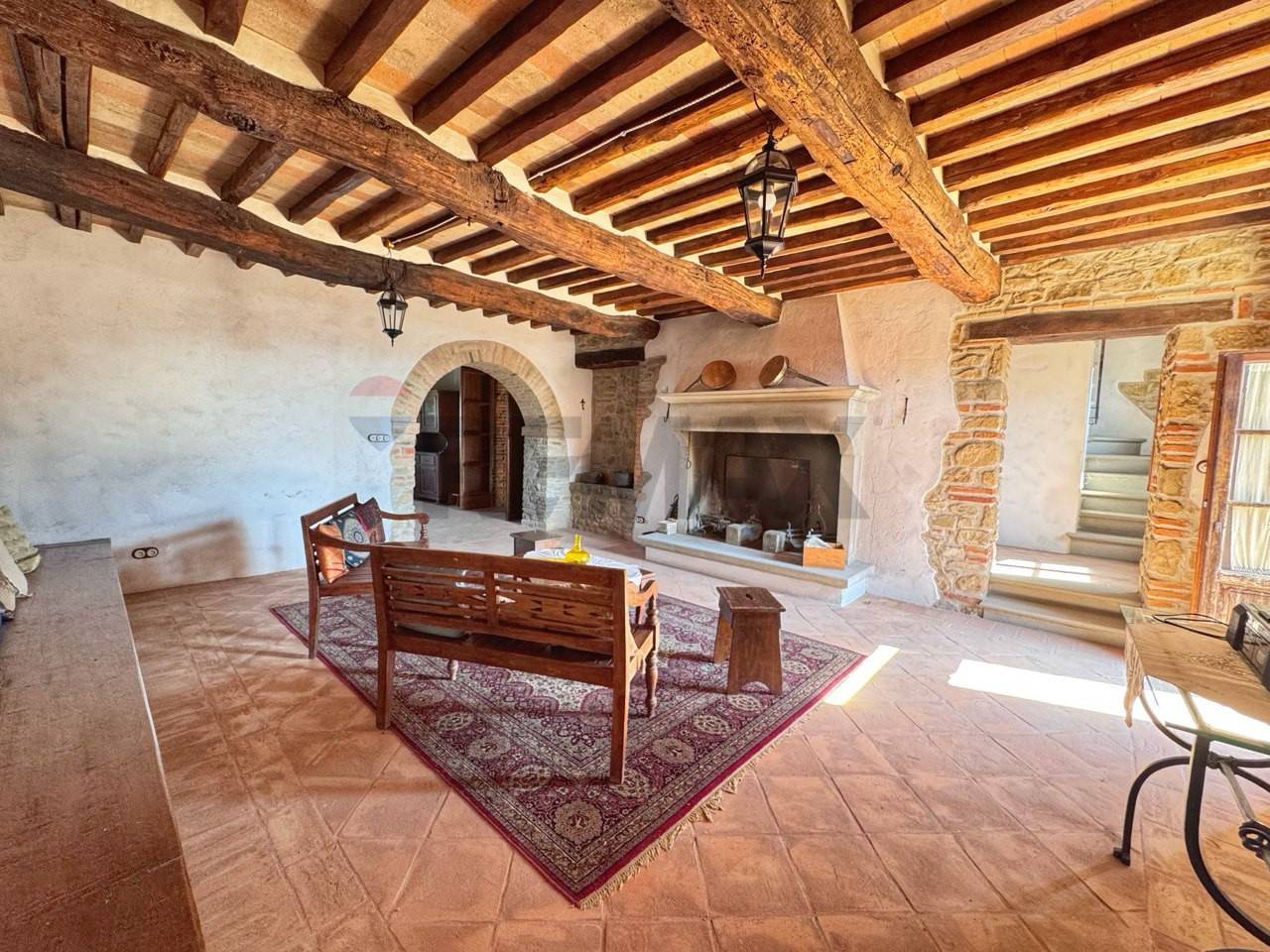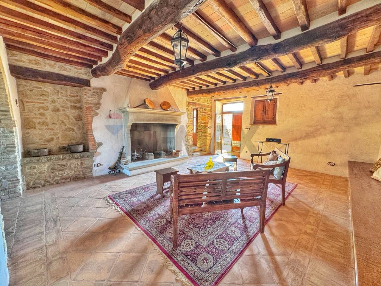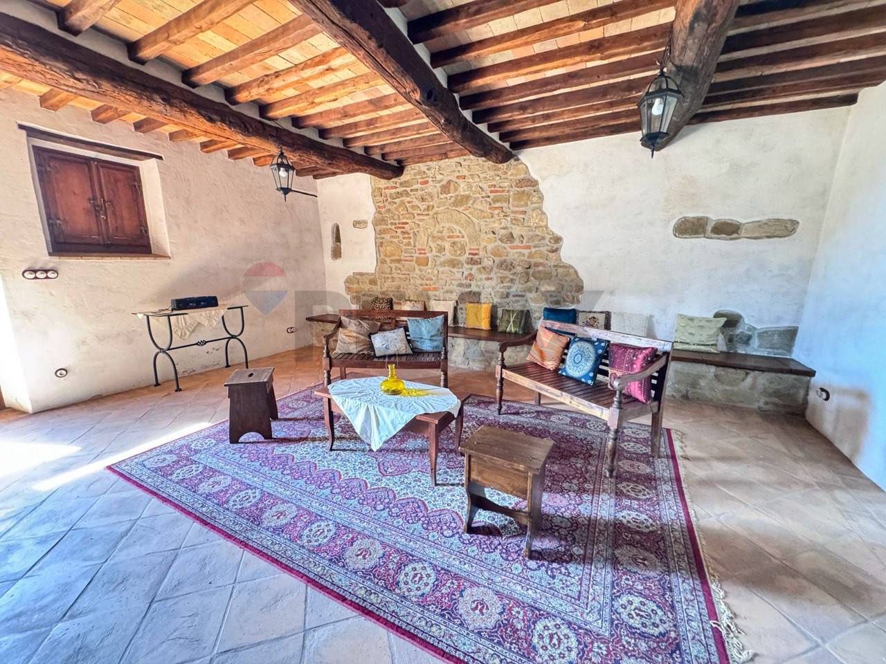 Porzione di casale in pietra in Fraz. Ranzola vicino a Lippiano al confine tra Toscana e l\'Umbria. Immerso nel verde delle colline al confine tra Toscana e Umbria, nella caratteristica Frazione di Lippiano (comune di Monte Santa Maria Tiberina (PG) ), proponiamo in vendita una suggestiva porzione di casale in pietra parte di un piccolo borgo rurale del fascino autentico. La proprietà si sviluppa su due livelli ed è composta da : ampio soggiorno con camino, tinello , piccolo salotto, cucina abitabile , dispensa e bagno al piano terra. Mentre al piano superiore dove si accede da una scala interna troviamo 4 camere matrimoniali e 3 bagni, due camere matrimoniali hanno entrambi bagni in camera e soppalchi dove poter usufruire lo spazio per dormire . Questa porzione di casa in vendita si presenta come un\'ottima opportunità per una struttura ricettiva. Lo stato attuale dell\'immobile è tenuto in ottime condizioni è stato ristrutturato recentemente con attenzione sui materiali mantenendo lo stile del rustico, i suoi pavimenti in cotto fatti a mano, le pareti tinteggiate all\'antica con calce bianca su base rossa e i suoi muri in pietra rendono tutto unico, arredato con gusto e migliorie di pregio. La casa viene riscaldata da riscaldamento a pavimento e ha un impianto a domotica. La porzione ha tre entrate indipendenti al piano terra e la quarta entrata al primo piano dove è servita da una grande terrazza coperta dove si può ammirare il bel paesaggio sulle colline toscane. All\' esterno troviamo un\'ampio patio con tettoia vicino al patio si trova una nicchia con un forno a legna, di proprietà un giardino di 500 mq circa con una jacuzzi che si affaccia sul paesaggio. ( leggi di meno )