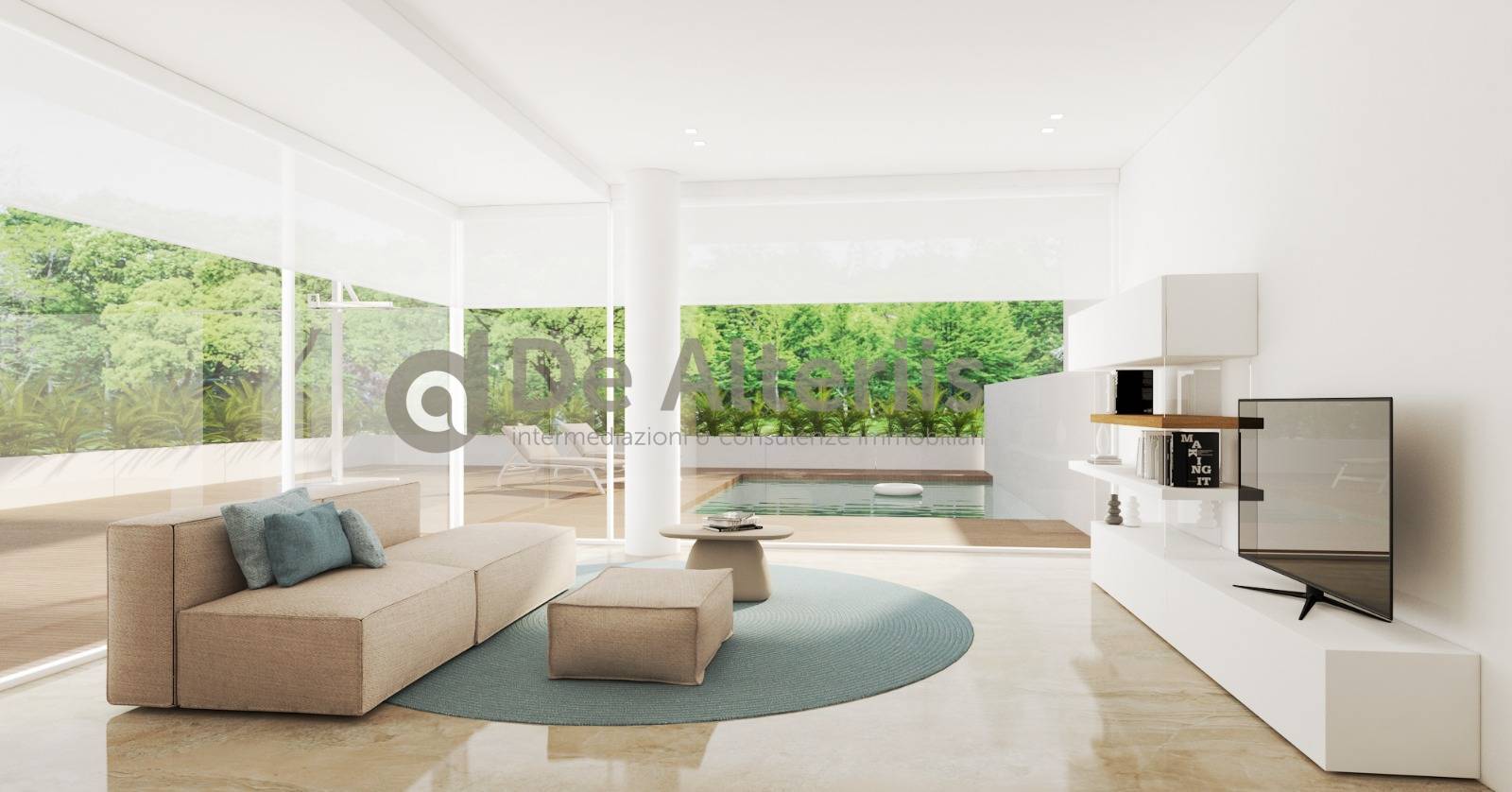 ULTIMA UNITA\' per te che stai cercando la tua casa a Jesolo con spazi adeguati a poterla vivere non solo nel periodo estivo, questa potrebbe essere la soluzione ideale. L\'unità immobiliare è ubicata in via Lombardia, in una zona oggetto di una recentissima lottizzazione, che dista 500 mt da piazza Mazzini ed è costituita da recenti costruzioni ad altezza massima di soli due piani con ampi spazi esterni. La porzione di bivilla in vendita, è composte da un giardino con pompeiana e pavimentazione in betonelle per l\'area parcheggio e pavimento in teak o similari per camminamenti e area piscina. Dal cancello pedonale si arriva al portoncino di ingresso indipendente. Dall\' ingresso si accede all\'immobile attraverso un disimpegno prima e un passaggio dove trova posto una cucina, per arrivare poi all\'area soggiorno/pranzo, con ampie vetrate e con vista direttamente sulla piscina esterna. Al piano terra troviamo anche un wc Attraverso la scala interna rivestita di marmo, cosi come la pavimentazione del piano terra, si accede alla zona notte, composta da un corridoio, 3 camere da letto ed un bagno con doccia. Una scala esterna circolare, conduce al terrazzo di copertura dove troviamo una pompeiana progettata per l\'alloggiamento dei pannelli fotovoltaici, e una parte di terrazza scoperta Le unità sono finite con materiali di pregio, come la pavimentazione in marmo del piano terra e della scala interna e i listoni in legno della zona notte, il mosaico dei bagni. L\'impianto elettrico in domotico e il riscaldamento tradizionale, l\'impianto antri-intrusione, le ampie vetrate del piano terra, il fotovoltaico già installato sul terrazzo di copertura. Piscina privata L\'arredamento è al solo scopo illustrativo e non è incluso nel prezzo di vendita ( leggi di meno )
