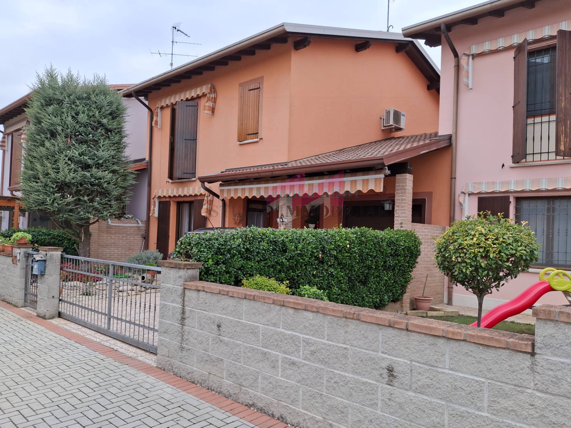 Villetta a schiera su due livelli con al piano terra ingresso-soggiorno, cucina, disimpegno lavanderia-bagno, garage, al piano primo 3 camere da letto di cui 2 matrimoniali e 1 singola, bagno, area cortiliva di pertinenza esclusiva. Attrezzata di pannelli solari e struttura di autonomia di elettricità.