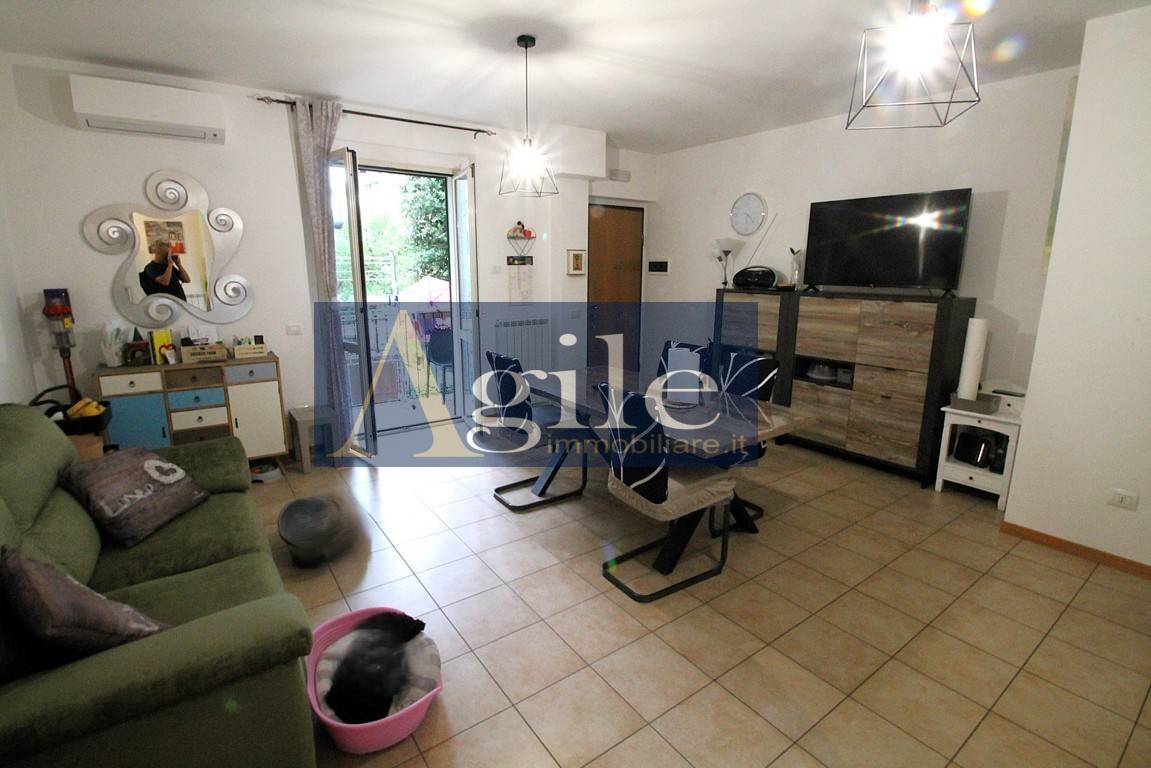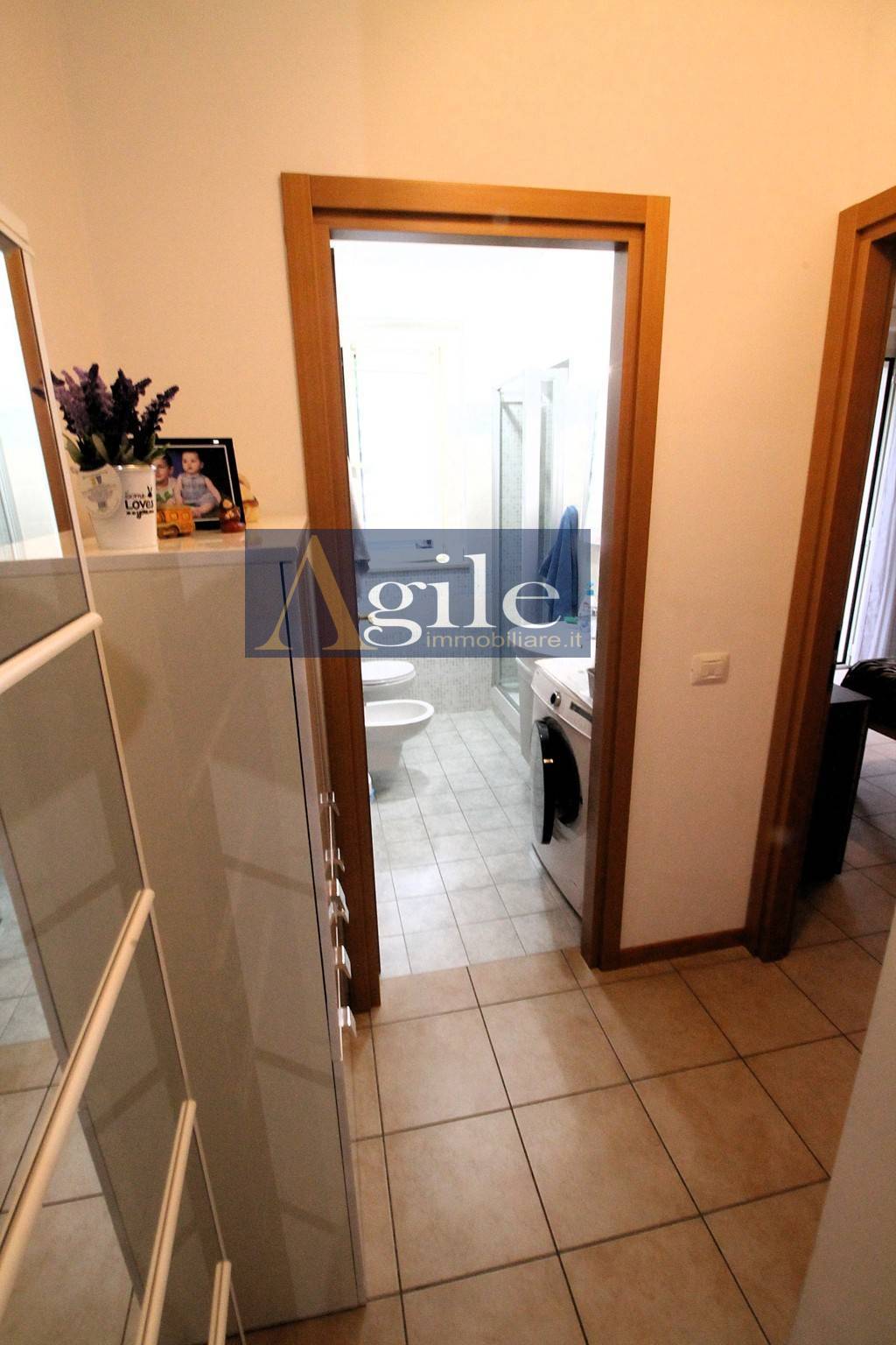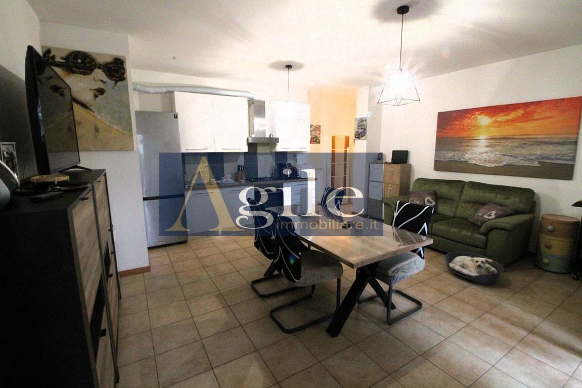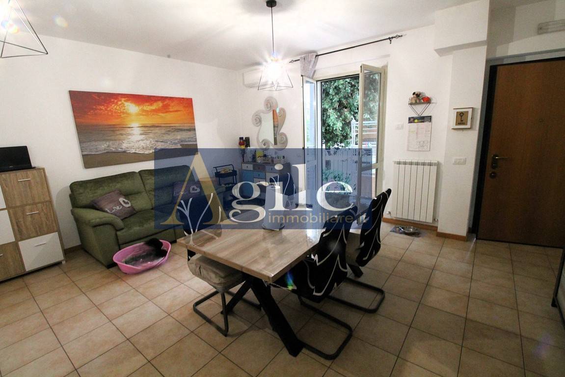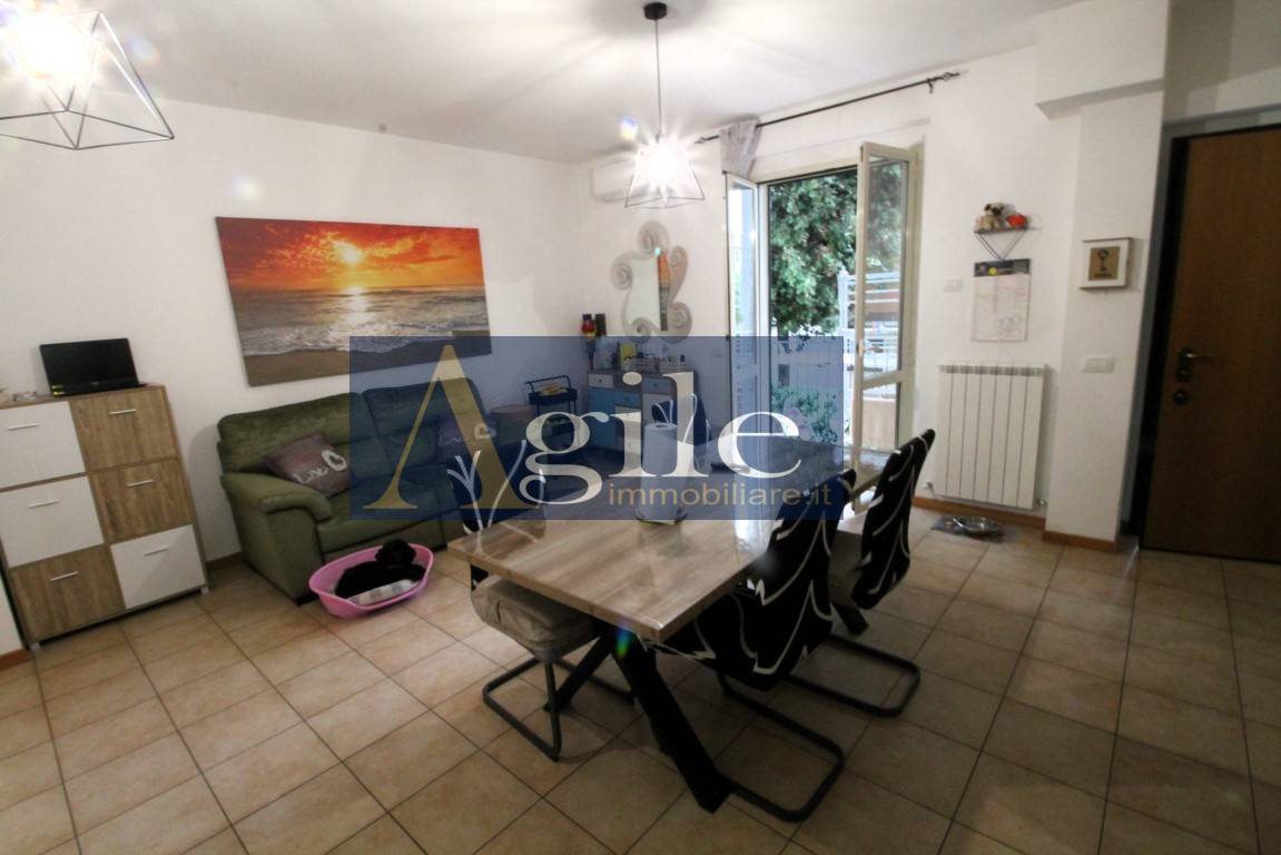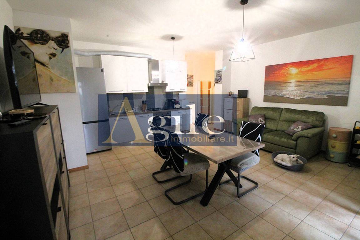Lagenzia Agile Immobiliare propone in vendita appartamento con ingresso indipendente nel comune di Colli del Tronto, Bilocale con corte esterna e ampio garage. - RIF. 3263 Appartamento delle dimensioni di 55 mq circa composto da tre locali con esposizione sui lati Est/Nord, sito al piano terra all\' interno di una palazzina di recente realizzazione \" 2010 \" servita da ascensore; Lappartamento con ingresso indipendente e corte pavimentata di accesso all\'abitazione di 14 mq circa risulta così suddiviso: ingresso sull\'ampio soggiorno con angolo cottura, disimpegno zona notte, camera da letto matrimoniale con corte esterna di 7 mq circa, bagno finestrato con box doccia; Completa la proprietà un Garage di 25 mq circa al piano seminterrato con accesso esterno; Classe energetica F; L\'unità in oggetto di recente realizzazione \" 2010 \" è dotata di Buone finiture con pavimentazione in gres porcellanato, infissi in Pvc con doppi vetri corredati di persiane in alluminio con alette regolabili, impianto termico indipendente con elementi radianti in alluminio e caldaia posizionata all\'esterno, climatizzatore split, impiantistica completamente autonoma e a norma secondo l\'epoca costruttiva; Questo appartamento in vendita a Colli del Tronto rappresenta la soluzione ideale per giovani coppie in cerca di residenza moderna sita in zona servita e vicina agli svincoli autostradali; Per ulteriori informazioni e per eventuali visite con il nostro agente di riferimento, siamo disponibili presso i nostri uffici siti a San Benedetto del Tronto , in via Bianchi 18 o potete contattarci al numero 0735/060012 ( leggi di meno )