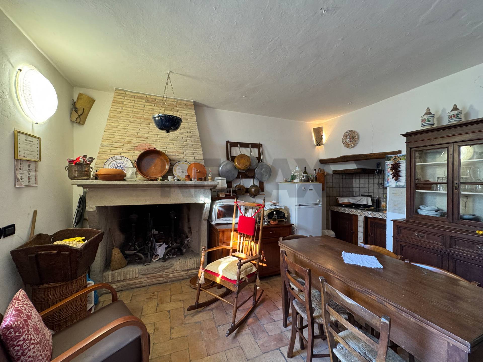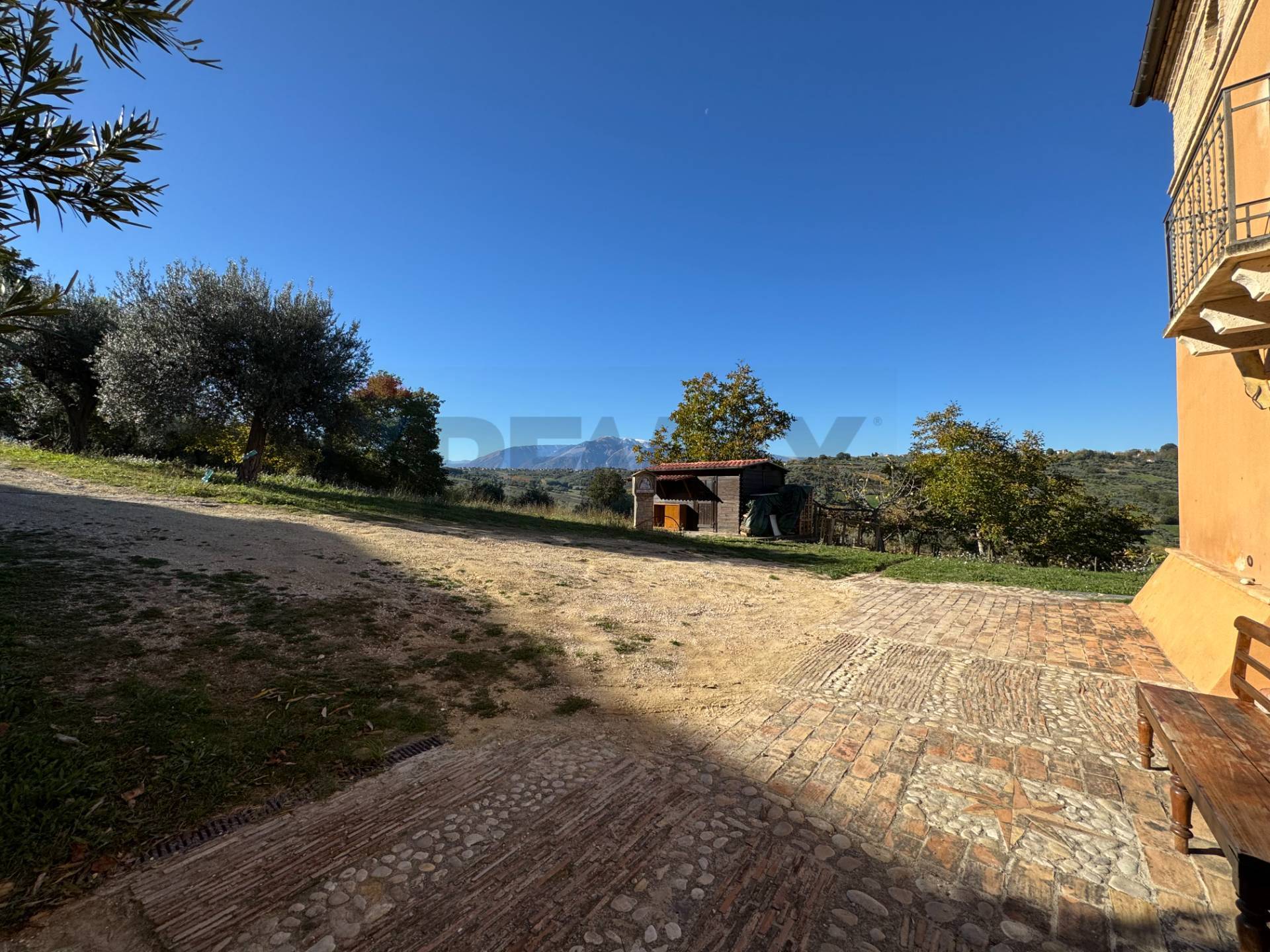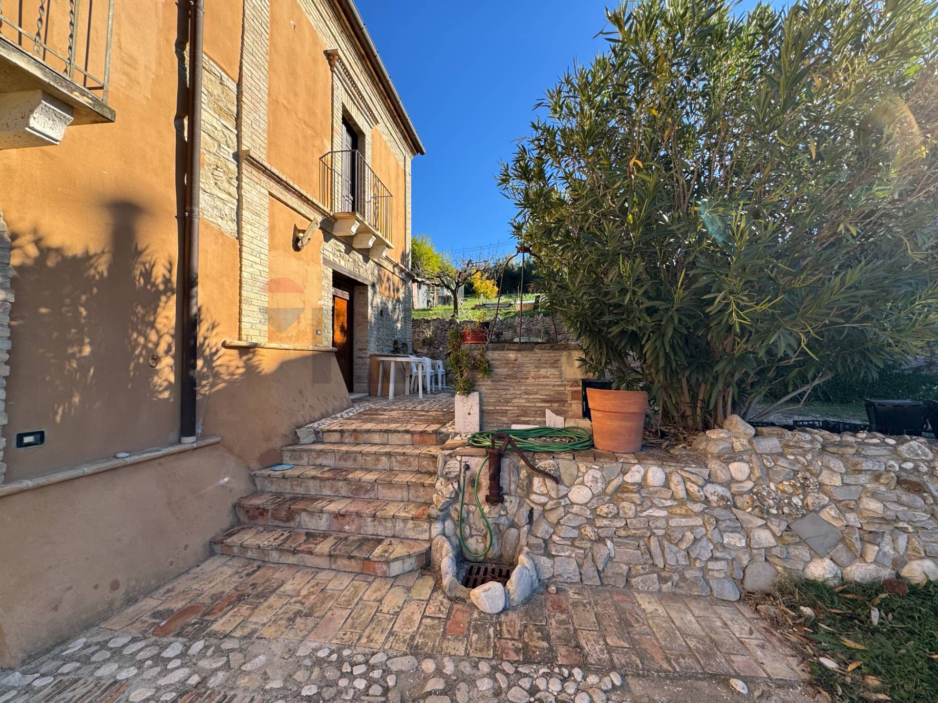 \"Casale Santa Maria dei Mesi\" In Abruzzo, nella vicina periferia del comune di Lanciano, vi aspetta un casale di campagna, un antico complesso rurale che custodisce il fascino e solidità della tradizione agricola del territorio. Il casale è frazionato in tre unità abitative di cui due soluzioni sono entrate nel mercato immobiliare, una prima unità residenziale di 120 mq ed una casa vacanza di 85 mq, questa descrizione e le immagini è dedicata all\'unità residenziale più ampia di 120 mq., i due corpi di casa possono divenire un\'unica residenza. Nel 1990 l\'intervento di restauro ha interessato tutta la parte strutturale, il rifacimento completo del tetto, e degli interni, mantenendo intatto il fascino originario del casale, lasciando tuttavia margine per ulteriori personalizzazioni e completamenti secondo i gusti del nuovo proprietario. La dimora rappresenta una sosta incantevole, tanto per un viaggiatore quanto per una famiglia che voglia avere una vita più riservata e raccolta per abitarci stabilmente tutto l\'anno. L\'appartamento è su più livelli, si accede subito in una sala pranzo con angolo cucina dove alloggia un antico camino, salendo una rampa di scala incontriamo sulla destra la camera padronale con due finestre e servizio interno con doccia, è una stanza espressiva, di grande intensità visiva ed emotiva, che trasmette bene il valore dei tempi andati, il sontuoso letto lo testimonia pienamente. Sullo stesso piano, si accede ad una luminosa camera studio/soggiorno, che affaccia sul balconcino della facciata dell\'edificio; da questo vano, superando dei gradini vi sorprenderà una immensa sala da bagno che vi accoglie con vasca idromassaggio, doccia e lavabi doppi, sanitari riservati e stanzino spogliatoio interno. Sul terzo livello accediamo ad un\'anticamera multiuso arredata con gusto, al momento adibita a camera singola con un grazioso servizio ed un utile ripostiglio, da qui, si apre nel sottotetto dell\'immobile, la seconda splendida camera da letto matrimoniale, con apertura in vetro a giorno sotto il cielo: l\'affascinante stanza dei sogni ad occhi aperti. Non può mancare un terrazzo panoramico che domina la campagna multicolore, dove ammirare albe e tramonti, avendo a portata d\'occhio tutti gli scorci possibili; dal terrazzamento si può godere il massiccio della Maiella e nelle belle giornate è il posto ideale per un solarium, nonché il posto magico per cercare le stelle, in questo luogo non esiste inquinamento luminoso artificiale, né rumori alcuni se non il frinire dei grilli e cicale. L\'immobile ha finestre in legno con scurini, l\'arredamento è in gran parte incluso nella vendita, il riscaldamento è autonomo a metano e climatizzazione in camera da letto e studio, l\'abitazione è servita da fossa settica, nella corte l\'antico pozzo è pienamente attivo, spazi per le auto. A corredo della proprietà, da valutare a parte ci sono 3.900 mq di terreno agricolo coltivato a vigneto, che genera annate di ottimo vino, Contattateci per maggiori informazioni, visitiamo insieme questa magnifica proprietà e rimarrete stupiti. ( leggi di meno )