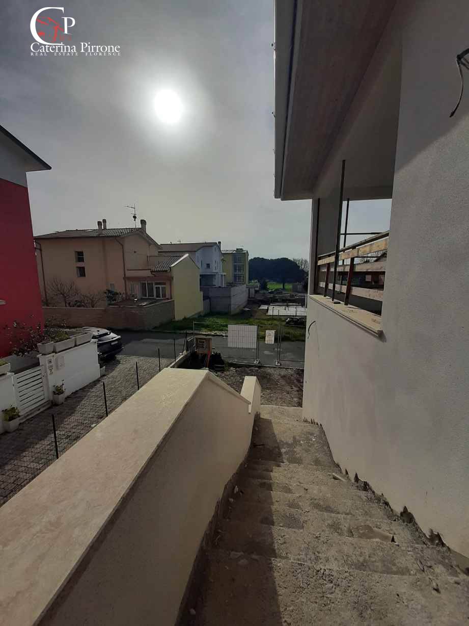 Cecina Sud, in posizione riservata e tranquilla, accessibile da strada senza sfondo, vendesi appartamento indipendente al piano primo di una villetta bifamiliare in fase di realizzazione. L\'immobile è così composto: ingresso, soggiorno con serra solare comunicante, terrazza pranzabile, cucina abitabile con terrazza, disimpegno-notte, 3 camere da letto, doppi servizi. Completano la proprietà posti auto interni, rimessa al piano terreno, grande giardino privato. Ottime finiture. Termo singolo. Classe energetica A1. Consegna prevista settembre 2026. Euro 370.000 CV-PA175 ( leggi di meno )
