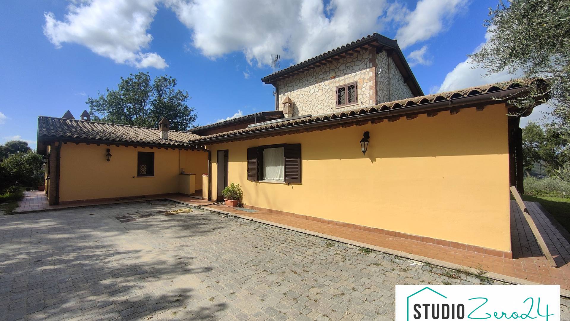 Villa Panoramica ad Amelia: Efficienza, Comfort e Privacy a Un\'Ora da Roma. Scopri questa magnifica villa di pregio, realizzata con cura tra il 2008 e il 2010, un perfetto equilibrio tra funzionalità, comfort e contesto naturale. Situata nella prima campagna di Amelia, a soli 5 minuti dal centro del paese con pratico accesso diretto dalla strada principale, questa proprietà esclusiva è ideale per chi cerca una soluzione abitativa di qualità. Struttura Ottimale e Accessibile: La villa si sviluppa principalmente su un unico, pratico livello, rendendola estremamente accessibile e funzionale per ogni esigenza. Gode inoltre di un\'ottima esposizione, garantendo luminosità e comfort durante tutto il giorno. Al piano terra, un ampio e luminoso soggiorno con camino si apre su un portico panoramico. La cucina abitabile, con accesso a un secondo portico, è ideale per cene all\'aperto. Completano il piano due camere da letto, un bagno e una suite padronale con bagno privato. Adiacente alla cucina, un\'ampia zona lavanderia con bagno aumenta la praticità. Al primo piano, una camera aggiuntiva offre una vista ampia e versatile. Spazi Versatili e Predisposti: Il piano interrato, vasto e al grezzo, offre ampie possibilità di personalizzazione, ideale per essere rifinito come taverna o sala hobby. Esterni Funzionali e Protetti: La proprietà include un terreno di circa 3700 mq, con 31 ulivi e varie piante da frutto. L\'intera proprietà, dotata di allarme periferico, è recintata con un cancello automatico per garantire sicurezza e privacy. Gli infissi in PVC con doppio vetro ad alto isolamento e membrana interna Anti UV assicurano efficienza energetica, e le inferriate antiscasso forniscono ulteriore protezione. Dotazioni Tecnologiche e Sostenibili: Due pannelli solari contribuiscono alla produzione di acqua calda sanitaria. La villa è allacciata al metano e dispone di due cisterne da 15.000 litri per l\'irrigazione del giardino. È inoltre presente la fattibilità per la realizzazione di una piscina interrata. Posizione Strategica: A soli 15 minuti dal casello Autostradale/FS di Orte e a circa 1 ora da Roma, questa villa combina la tranquillità della campagna con la comodità dei collegamenti principali. Una proprietà efficiente e ben posizionata, pronta per essere vissuta. ( leggi di meno )