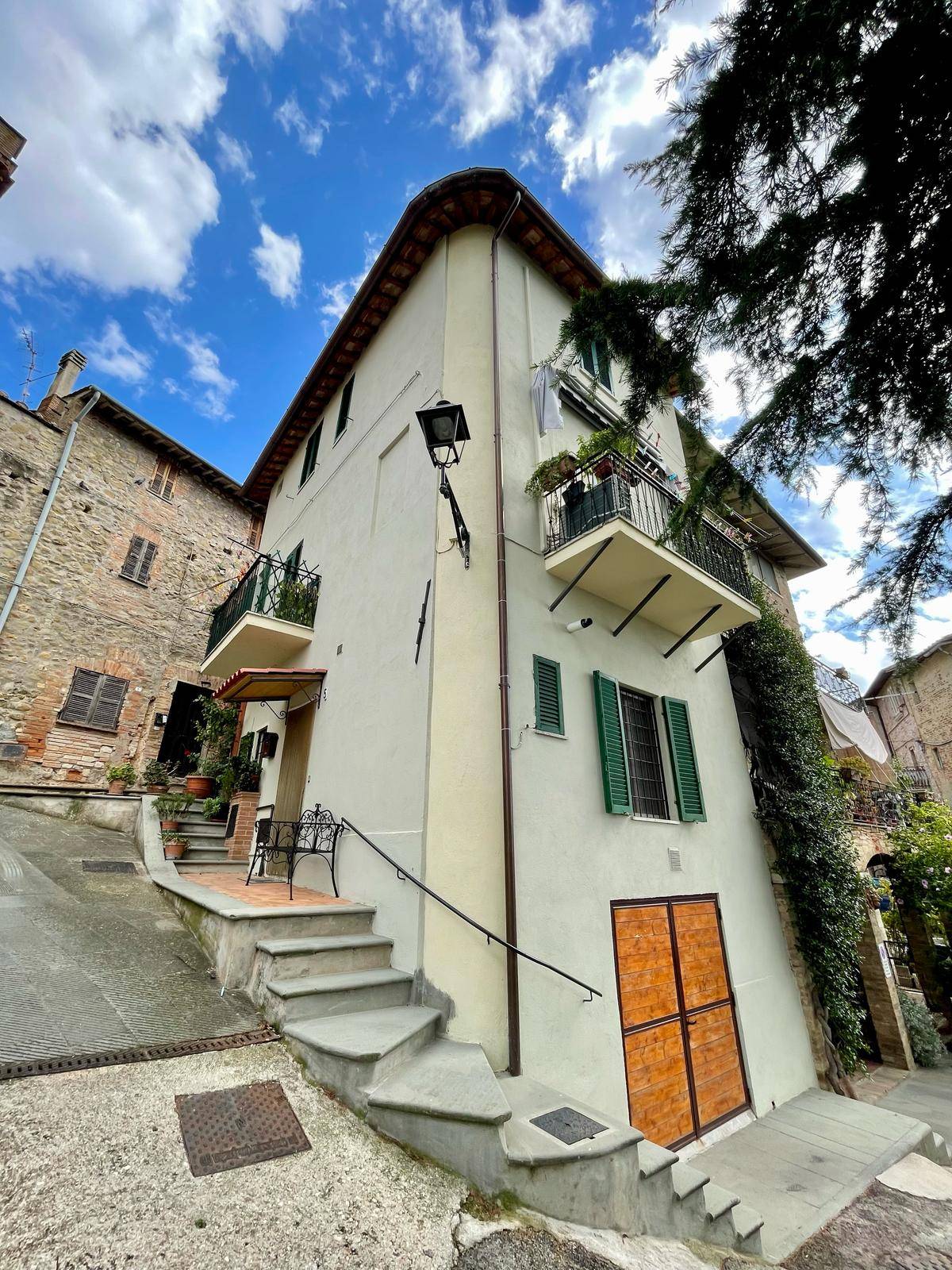 DERUTA, ZONA RIPABIANCA. Situato nel pittoresco borgo di Ripabianca, a pochi passi da Deruta, all\'interno delle antiche mura medievali, proponiamo in vendita un grazioso e panoramico cielo-terra su tre livelli, recentemente ristrutturato, sia internamente che esternamente, compreso il tetto, nuovo e antisismico. E\' così composto: accogliente zona living con zona cucina, due bagni, lavanderia, tre camere matrimoniali e cameretta . A corredo della proprietà si dispone di un comodo garage posto al piano terra. ( leggi di meno )