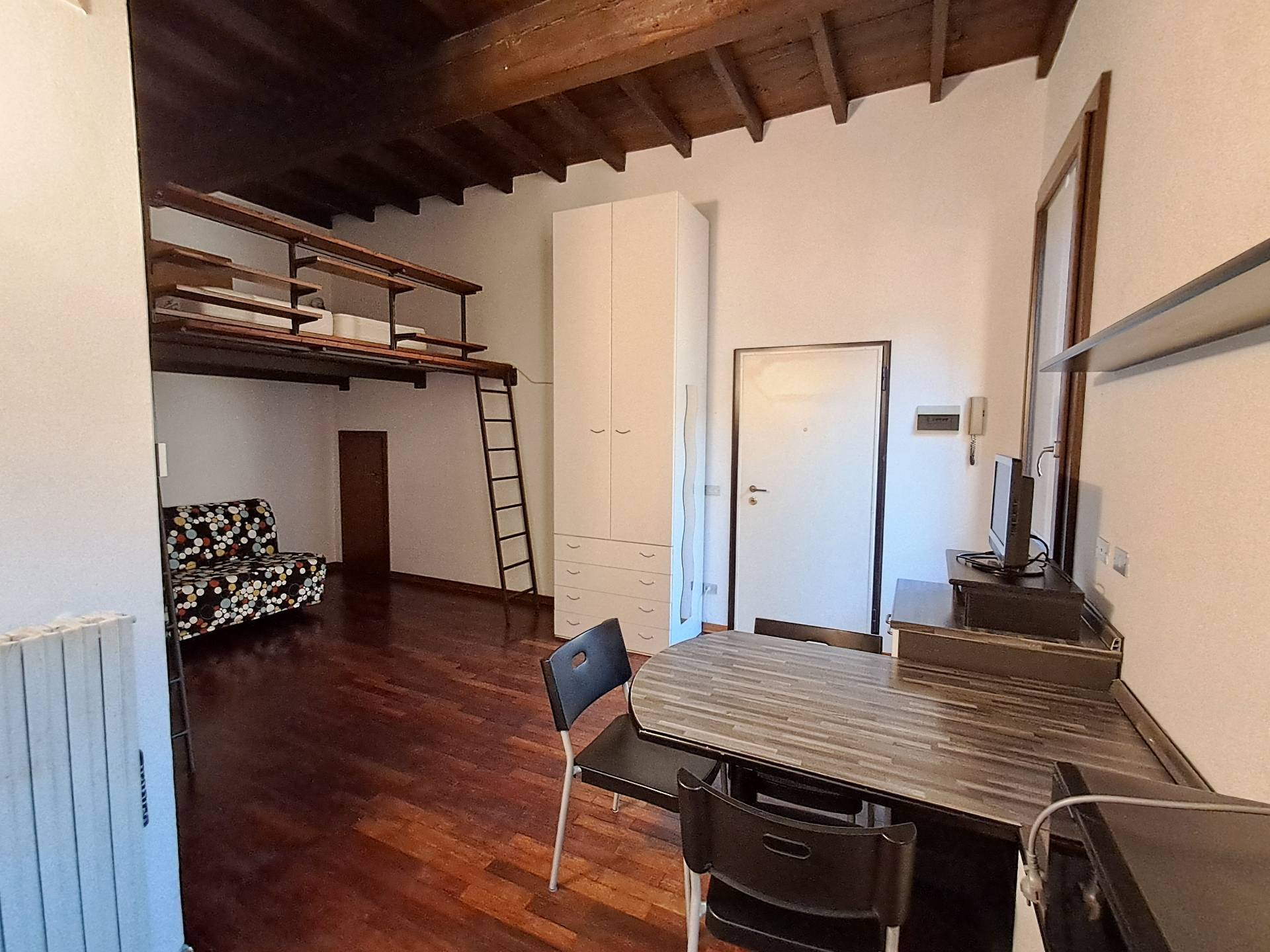 In Via delle Scienze nel Cuore storico della Città Scopri questo affascinante libero monolocale situato al primo piano di una palazzina d\'epoca, in contesto signorile di poche unità perfettamente posizionato nel cuore pulsante della città. L\'ingresso accogliente conduce a un ampio soggiorno con angolo cottura e zona notte, caratterizzato da travi a vista e parquet che donano calore e charme... ( leggi di più )