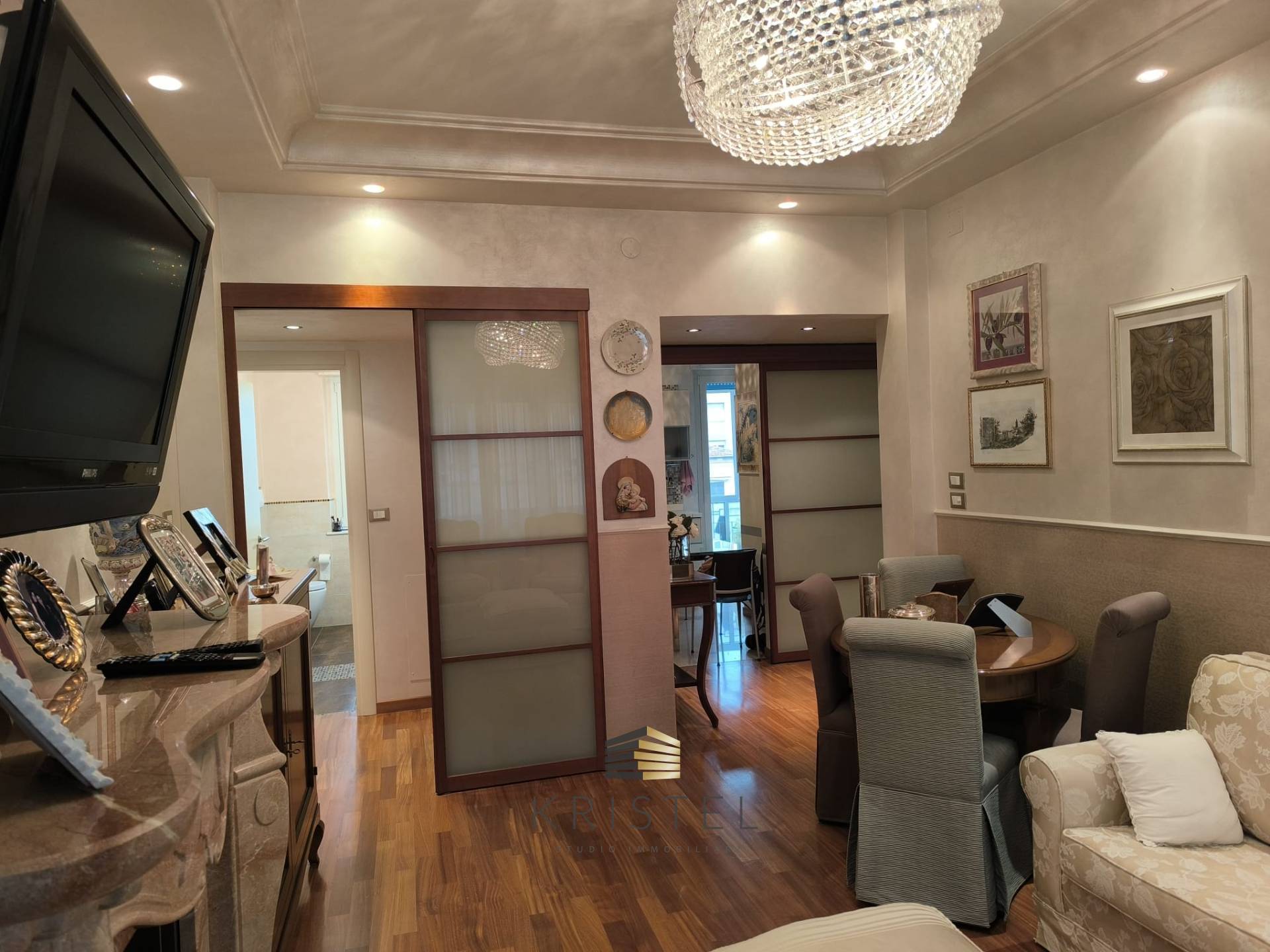 VENDESI NUDA PROPRIETA\' L\'appartamento in vendita si trova in una delle zone centrali e comode di Pescara; grazie alla sua ubicazione strategica è possibile usufruire di tutti i servizi e con una passeggiata di soli dieci minuti a piedi si raggiunge il mare con la sua bellissima riviera attrezzata. La palazzina, edificata nel 1959, è dotata di un comodo ascensore e l\'immobile, situato al secondo piano, si presenta in ottime condizioni e si estende su una superficie totale di 85 metri quadrati ben ripartiti. L\'appartamento si apre con un ingresso accogliente e di giuste dimensioni. La zona giorno presenta una luminosa sala con parete totalmente finestrata ed affaccio su un balcone inoltre l\'ambiente è dotato di un affascinante camino e le sue dimensioni permettono di collocare un living completo ed elegante. Nella cucina abitabile si può creare un ambiente funzionale e dotato di ogni comfort inoltre ha l\'accesso ad un balcone verandato adibito a lavanderia. La zona notte si compone di due eleganti camere da letto, entrambe di generose dimensioni e luminose. I due bagni, di cui uno finestrato, solo ben rifiniti e completi entrambi di doccia , sanitari sospesi ed accessori di design. Inoltre ci sono due funzionali ripostigli e/o cabine armadio. L\'immobile è dotato di finiture di pregio come pavimentazione in parquet esclusa cucina e bagni, rivestimenti in ottima ceramica, porte scorrevoli e soffitti decorati. Un\'opportunità unica per chi desidera vivere nel cuore di Pescara, in una casa comoda ed elegante. Per ulteriori informazioni e visite contattaci al 388 8775144 o info@kristelimmobiliare.it ( leggi di meno )