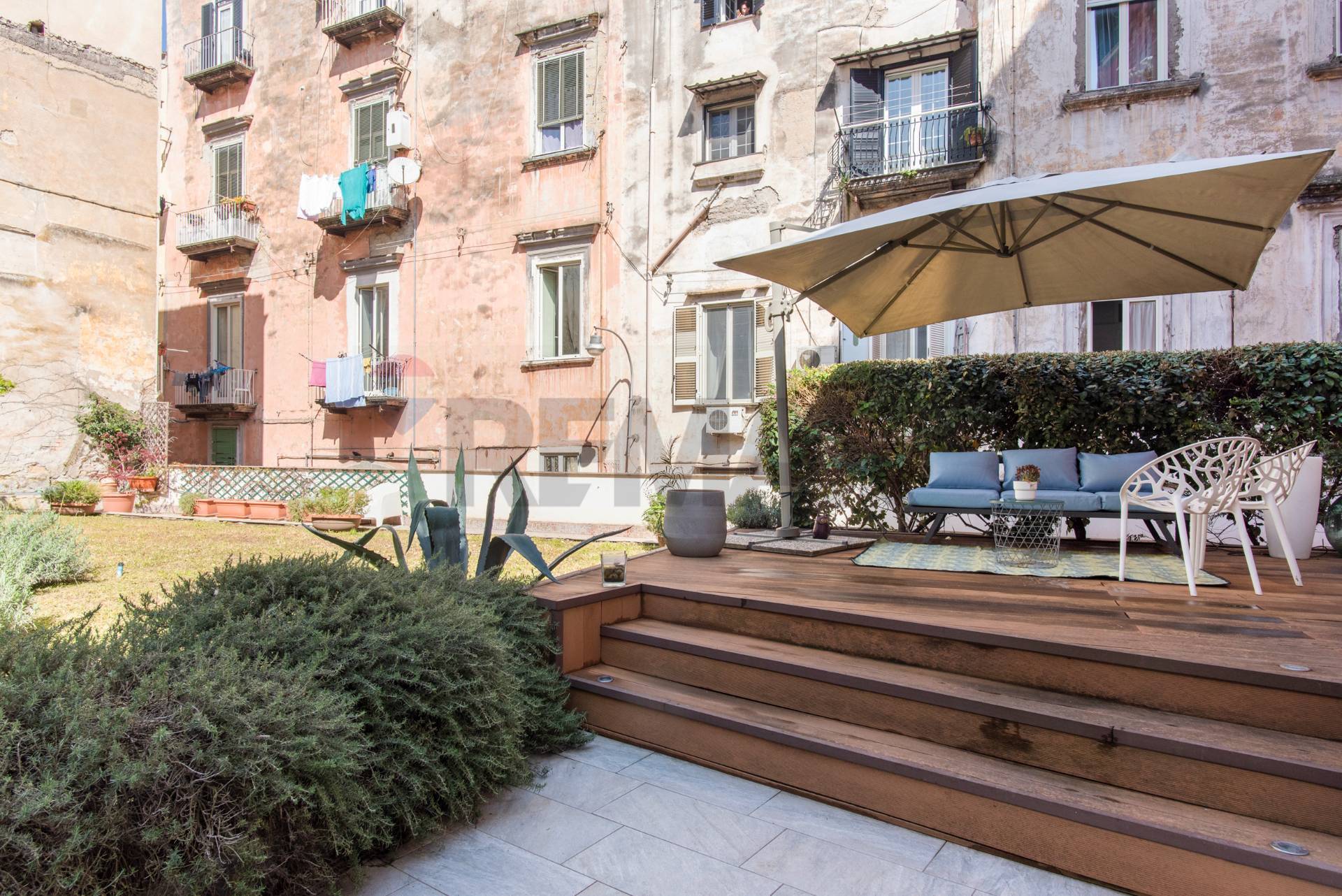 Avvocata - Via S. Rosa, a pochi passi da Piazza G. Mazzini, allinterno dello storico Palazzo Sansone, risalente al XVIII secolo, nato dalla riconversione di un convento in stabile ad uso residenziale, Vendiamo una particolarissima soluzione abitativa, posta al secondo piano, con ascensore. Lappartamento, pur conservando limpianto storico di base, è stato reinventato in chiave moderna, creando un percorso fluido, del tutto privo di porte ad eccezione di quelle degli ambienti di servizio protetti da battenti in vetro fumé, con ambienti che si susseguono a partire dallingresso in un ampio salone di rappresentanza, caratterizzato da due spazi che si fondono armonicamente fra di loro, pur distinti fra la zona salotto e quella pranzo per ospiti di riguardo. Attraversando un grande studio si accede alla comoda e spaziosa cucina, che affaccia direttamente sul terrazzo, in parte pavimentato, senza nulla togliere al grande giardino pensile che completa la proprietà. La zona giorno è caratterizzata dalla presenza di un bagno accogliente e funzionale e di una grande dispensa a servizio della cucina. Da questultima, tramite una scala a gradini sospesi, si accede al soppalco che ospita la zona notte, costituita da ununica grande camera da letto, due cabine armadio ed un secondo servizio, il tutto con affaccio a balconata sul livello sottostante, pur conservando la necessaria intimità offerta dal livello soprastante. E di evidenza solare che lappartamento sia stato concepito ed organizzato in maniera personalizzata dallestro dellattuale proprietà, con particolare attenzione ai dettagli ed al pregio dei materiali utilizzati, pur nel rispetto delle caratteristiche costruttive, ma conferendo allimmobile un senso di modernità e di profondità, che consente di ammirare il verde del giardino fin dallampio salone. Completa la proprietà un box auto pertinenziale di circa MQ 16, in via S.Mandato, nel quale è stato montato un elevatore per poter parcheggiare una seconda auto. Proprio la peculiarità del progetto e la ricercatezza dei materiali più appropriati per realizzare la ristrutturazione dellappartamento, rendono questa esclusiva proposta immobiliare di assoluto interesse. Le presenti informazioni e planimetrie sono meramente indicative e non costituiscono elementi contrattuali. ( leggi di meno )