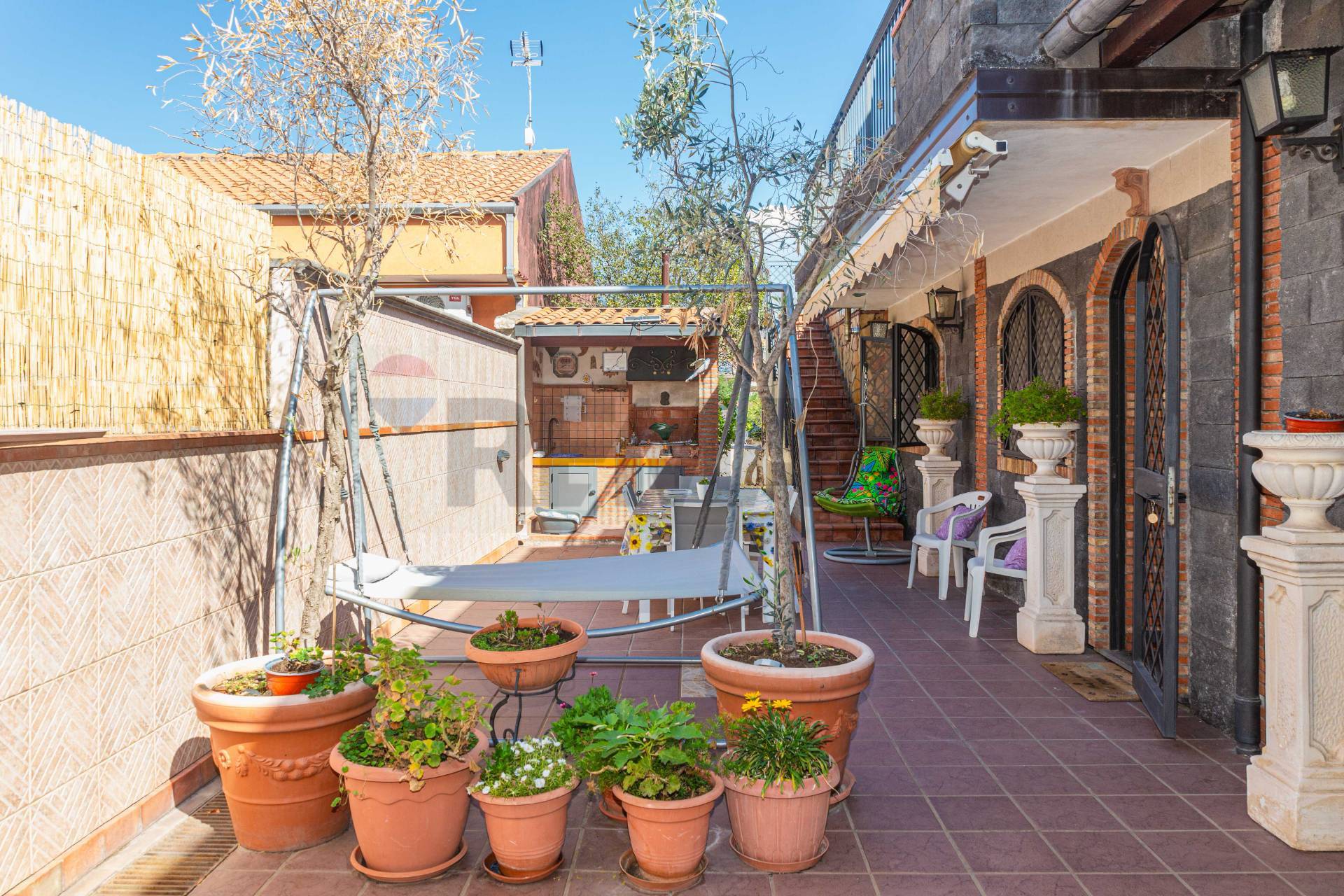 Situata in una posizione privilegiata all\'interno del contesto residenziale \"Villaggio delle Ginestre\", questa villa indipendente rappresenta l\'eccellenza del \"pronto da abitare\". Recentemente oggetto di una ristrutturazione radicale, la proprietà è stata rifinita con materiali di pregio e soluzioni architettoniche volte al massimo comfort abitativo. DISTRIBUZIONE DEGLI AMBIENTI (302 MQ) La villa si articola in 7 ambienti principali ottimamente distribuiti tra zona giorno e zona notte, garantendo ampiezza e funzionalità. Piano Terra: Rappresentanza e Convialità L\'ingresso apre su una zona giorno luminosa e ben organizzata: Salone di Rappresentanza: Un ambiente vasto e accogliente per i momenti formali. Giardino d\'Inverno: Una suggestiva veranda living, ideale come zona relax o studio, che integra perfettamente l\'interno con l\'esterno. Sala da Pranzo e Cucina: Due ambienti spaziosi e distinti, progettati per la massima vivibilità quotidiana. Area Servizi: Una grande sala lavanderia/stireria indipendente e un bagno di servizio rifinito con box doccia in muratura. Piano Primo: La Zona Notte Attraverso un\'elegante scala interna si accede al piano superiore, circondato da un balcone perimetrale a giro: Camere da Letto: Troviamo due ampie camere matrimoniali. La camera padronale è impreziosita da una spaziosa cabina armadio dedicata. Sala da Bagno: Un ampio bagno a servizio del piano, curato nei minimi dettagli e dotato di vasca idromassaggio, perfetto per i momenti di relax. Luminosità: Ogni ambiente del piano notte ha affaccio diretto sul balcone, garantendo eccellente esposizione e ricircolo d\'aria. CARATTERISTICHE TECNICHE E FINITURE L\'immobile è stato riqualificato con standard elevati per garantire durabilità e risparmio energetico: Infissi: Nuovi serramenti in alluminio/PVC a taglio termico con doppio vetrocamera; porta d\'ingresso blindata. Impiantistica: Impianti elettrico e idrico totalmente rifatti e certificati. Pavimentazioni: Superfici in gres di alta qualità che donano un design moderno e uniforme a tutta la casa. SPAZI ESTERNI E PERTINENZE La proprietà gode di circa 300 mq di spazi esterni privati: Terrazza Panoramica: Oltre 50 mq di solarium sovrastante con vista mozzafiato sull\'Etna. Corte Attrezzata: Zona barbecue in muratura, tettoia in legno per il parcheggio coperto e un grazioso orticello con alberi da frutto. Garage: Comoda autorimessa di 40 mq con accesso carrabile. Perché acquistarla oggi: Questa villa è la soluzione ideale per chi cerca un\'abitazione di alto livello, senza l\'onere e l\'incertezza dei costi di una ristrutturazione da iniziare. Un immobile pronto, elegante. ( leggi di meno )