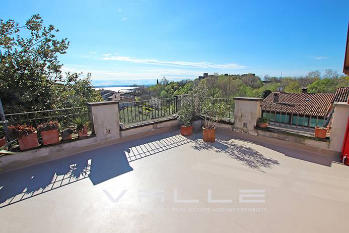 - PADENGHE SUL GARDA _ MONTE Pregevole attico trilocale di mq 105 dotato di 80 mq di terrazze panoramiche vista lago, grande cantina, autorimessa e posto auto privato. Immobile situato in edificio d\'epoca completamente ristrutturato nel 2008 dotato di bella piscina condominiale, giardini ed elegante ingresso comune, localizzazzato in zona Monte, immerso nel verde e nella tranquillità a pochi m... ( leggi di più )