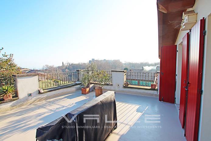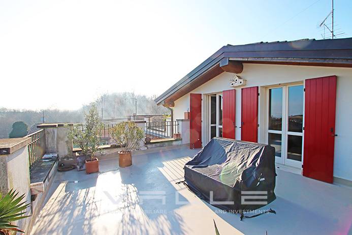 - PADENGHE SUL GARDA _ MONTE Pregevole attico trilocale di mq 105 dotato di 80 mq di terrazze panoramiche vista lago, grande cantina, autorimessa e posto auto privato. Immobile situato in edificio d\'epoca completamente ristrutturato nel 2008 dotato di bella piscina condominiale, giardini ed elegante ingresso comune, localizzazzato in zona Monte, immerso nel verde e nella tranquillità a pochi minuti dal castello di Padenghe, dal centro paese con tutti i suoi servizi di qualità ed a pochi passi dal lago, comodamente raggiungibile tramite autostrada e superstrada in 25 minuti da Brescia, 60 minuti da Bergamo e 90 minuti da Milano. L\'immobile è internamente composto da: Accesso esclusivo al piano primo con comodo locale ripostiglio/lavanderia e scala di accesso esclusiva al piano secondo che comprende ampio soggiorno con accesso al terrazzo, cucina abitabile con grande porta finestra scorrevole ed accesso al terrazzo, camera padronale con accesso al terrazzo, seconda camera con accesso al terrazzo e bagno con doccia e lucernario. L\'immobile si trova in perfette condizioni d\'uso dotato di soffitti in travi in legno verniciato a vista, pavimentazioni in parquet di ottima qualità, riscaldamento autonomo, aria condizionata, tutti i comfort moderni e di qualità, le terrazze sono splendidamente rifinite in cemento lucidato, entrambe dotate di una vista panoramica a 360° con vista lago e vista del castello, equipaggiate di lavabo e punto acqua esterno, illuminazione esterna, molto godibili per pranzi, cene e feste all\'aperto. La proprietà si completa di una piscina condominiale anch\'essa immersa nel verde e nei giardini oltre che di una ampia cantina di circa 10 mq, un\'autorimessa singola comoda anche per suv e un posto auto privato situato di fronte all\'ingresso dell\'edificio che è molto riservato e composto da sole 5 unità abitative. L\'immobile gode di una privacy praticamente totale ed è adatto sia come abitazione principale che come seconda casa. 550.000,00 Spese condominiali 2.800,00 annue. CLASSE ENERGETICA: C 81,48 [Kwh/m²a] Vai all\'annuncio: https://www.studio-valle.com/it/padenghe-sul-garda/ STUDIO IMMOBILIARE VALLE Flaminia S.r.l. Real estate and investments 24121 Bergamo - Italy V.le Vitt. Emanuele II n. 65 tel +39 035 231588 WhatsApp: +39 3920190070 www.studio-valle.com info@studio-valle.com Facebook: StudioImmobiliareValle Instagram: studio.immobiliare.valle X: ValleRealEstate Skype: Valle-Real-Estate ( leggi di meno )