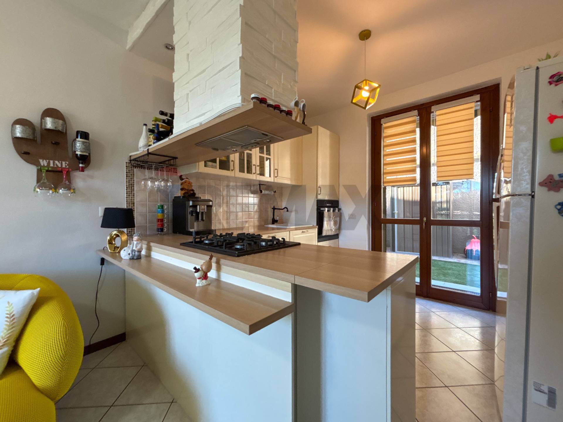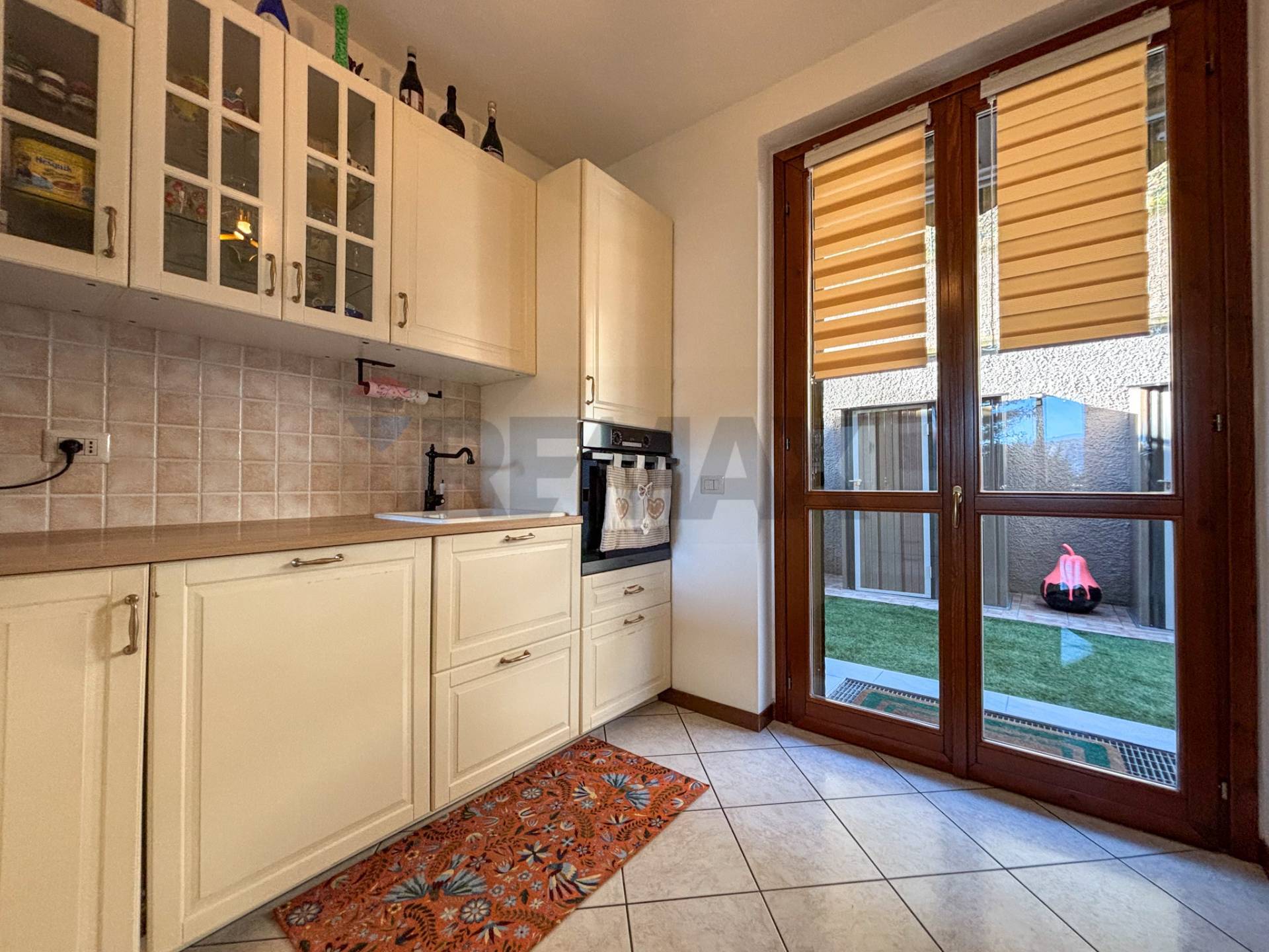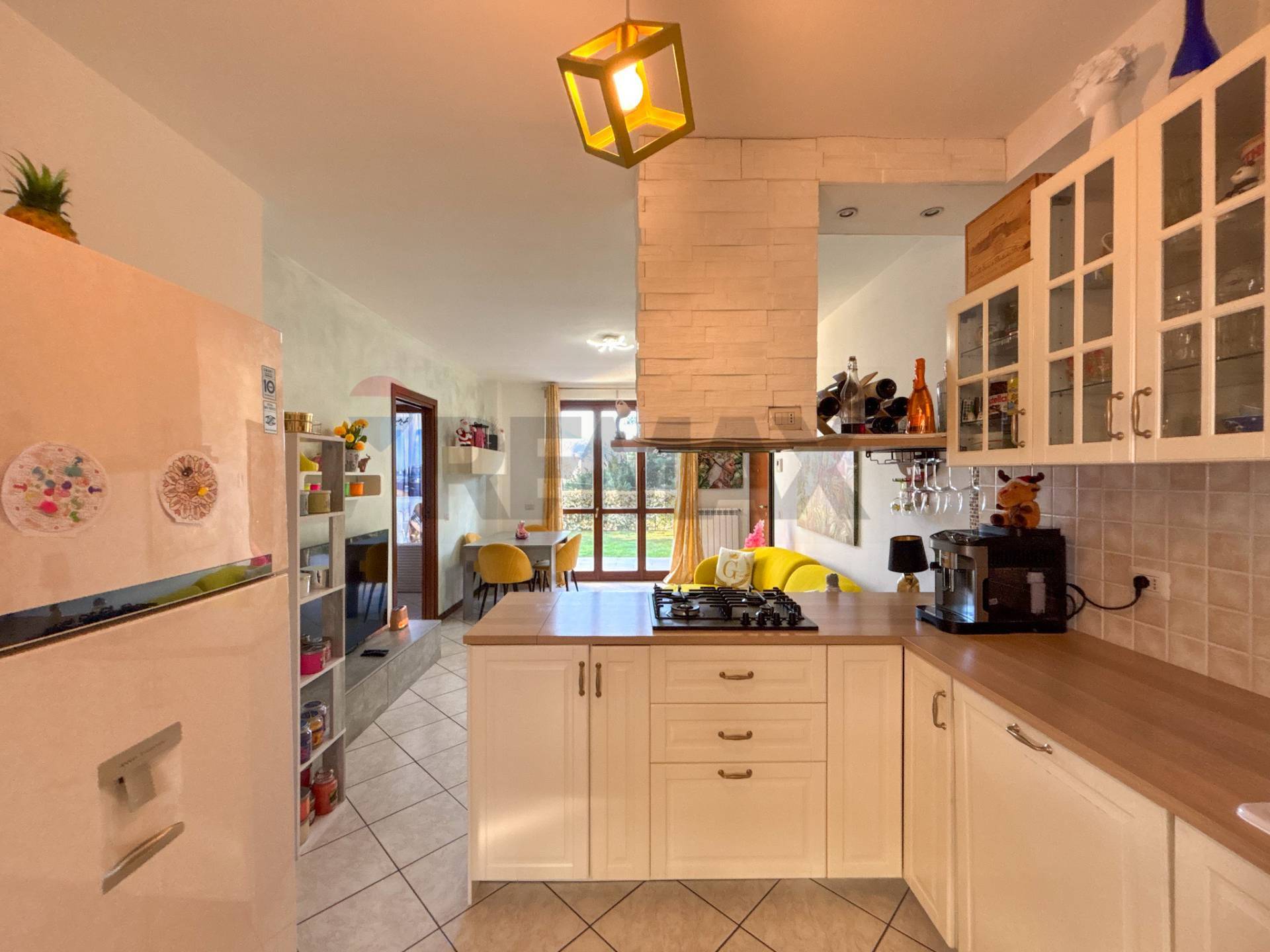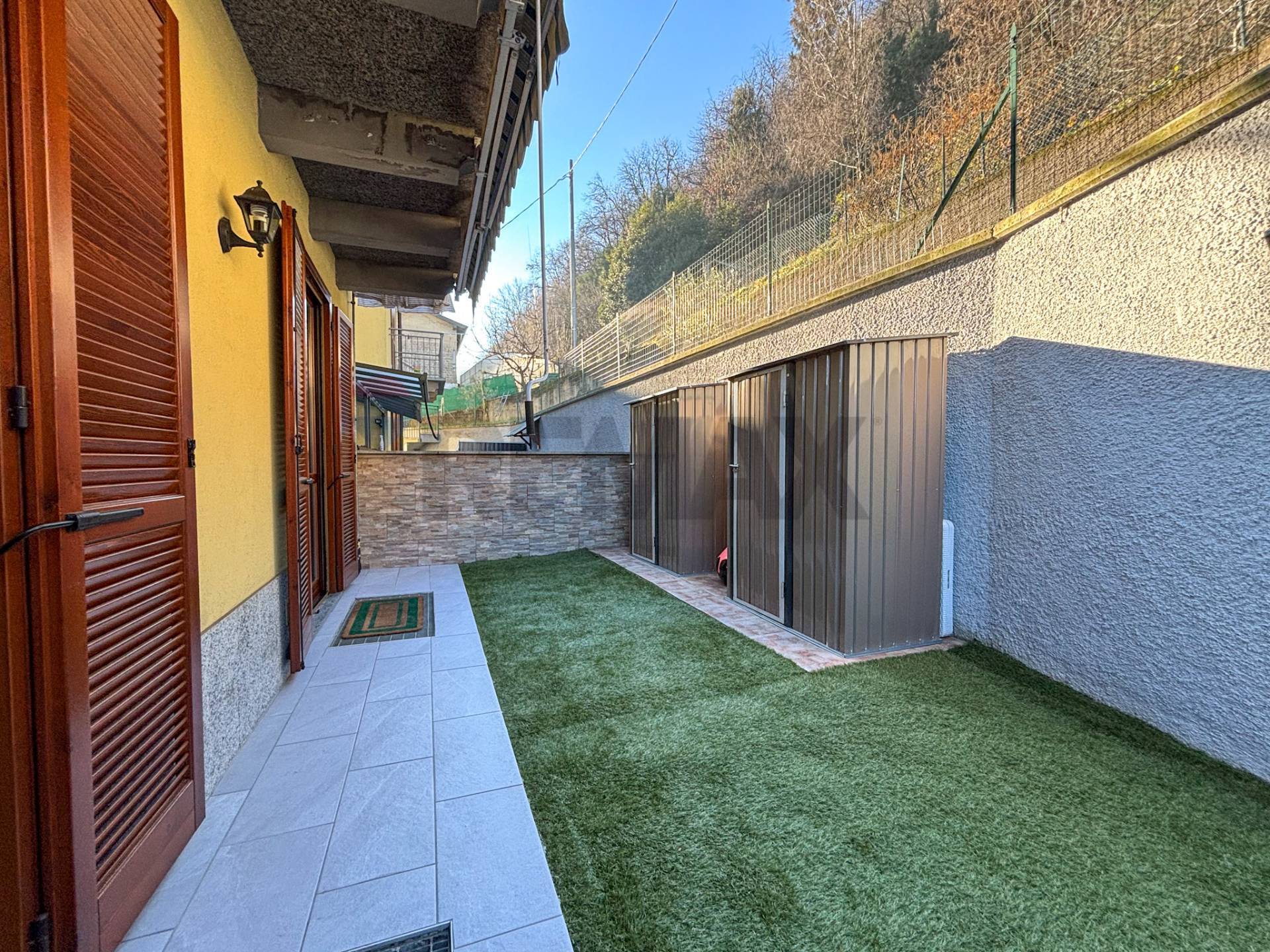 GERMIGNAGA - Trilocale con box e giardino con vista panoramica Nella splendida cornice di Germignaga, sulla strada che porta a Luino e a circa 1 km dalle sponde del lago Maggiore, proponiamo in vendita un fantastico appartamento al piano terra con giardino privato e ampio box con cantina in un contesto di sole 3 famiglie. L\'appartamento si può raggiungere direttamente dal comodo box collegato internamente per la massima comodità quotidiana. Salendo le scale si giunge al vialetto d\'accesso di questo piccolissimo contesto senza amministratore e praticamente con spese condominiali quasi azzerate. Il complesso, edificato nei primi anni 2000, si presenta in ottimo stato manutentivo, in una posizione comoda e tranquilla perché rialzata rispetto alla strada. Dall\'ingresso, tramite porta blindata, si entra nel soggiorno che funge anche da zona pranzo in cui domina la scena una grande porta finestra che conduce nel meraviglioso giardino. L\'area cucina, adiacente, con una moderna penisola, ha una seconda uscita nel giardino che circonda la casa sui 3 lati. Una pratica porta scorrevole a scomparsa separa la zona notte composta da una spaziosa camera matrimoniale con uscita sul giardino, un ampio bagno dotato di sanitari sospesi, colonna lavanderia e vasca e una seconda camera singola che assicura lo spazio necessario per una terza persona o per un locale da adibire a studio per lo smartworking. Su tutte le finestre, con serramenti in legno doppi vetro tenuti molto bene, sono presenti le zanzariere. Il giardino, che circonda la casa su 3 lati, garantisce uno spazio sufficientemente ampio per chi ha un figlio o un animale domestico e necessita di uno sfogo esterno oppure per chi vuole godersi l\'alba, una cena in famiglia o tra amici e rendere unico e indelebile ogni ricordo. Circa 2 anni fa è stata rifatta la nuova pavimentazione esterna. L\'appartamento è completamente autonomo per quanto riguarda le utenze (Luce, acqua e gas), le uniche spese annuali (all\'incirca 200 ) riguardano le luci del vano scala, la basculante elettrica del box, la pulizia della fossa biologica e la cura di alcune aree verdi in comune. L\'ampio box singolo essendo molto alto, permette lo stoccaggio di molti oggetti, avendo così di fatto una comoda cantina. Inoltre, vista la generosa quantità di spazio nel corsello, è possibile parcheggiare una seconda piccola auto davanti al proprio box senza intralciare il passaggio altrui. Questa casa è perfetta se: - sei una coppia o famiglia di 3 persone - cerchi una casa senza lavori da fare con giardino e box - vuoi abitare vicino a Luino e alla bellezza del lago Maggiore Chiamaci per fissare un appuntamento !!! PER ACQUISTARE QUESTA ABITAZIONE DEVI PRIMA VENDERE IL TUO IMMOBILE? OTTIMO, SAREMO FELICI DI AIUTARTI ED ACCOMPAGNARTI DURANTE TUTTO IL PROCESSO DI COMPRAVENDITA. DEVI ACCEDERE AD UN MUTUO PER L\'ACQUISTO? E\' CONSIGLIABILE EFFETTUARE PREVENTIVAMENTE UNA CONSULENZA GRATUITA PER VERIFICARE LA FATTIBILITA\' DI OTTENIMENTO MUTUO, CONTATTACI PER MAGGIORI INFORMAZIONI. ( leggi di meno )