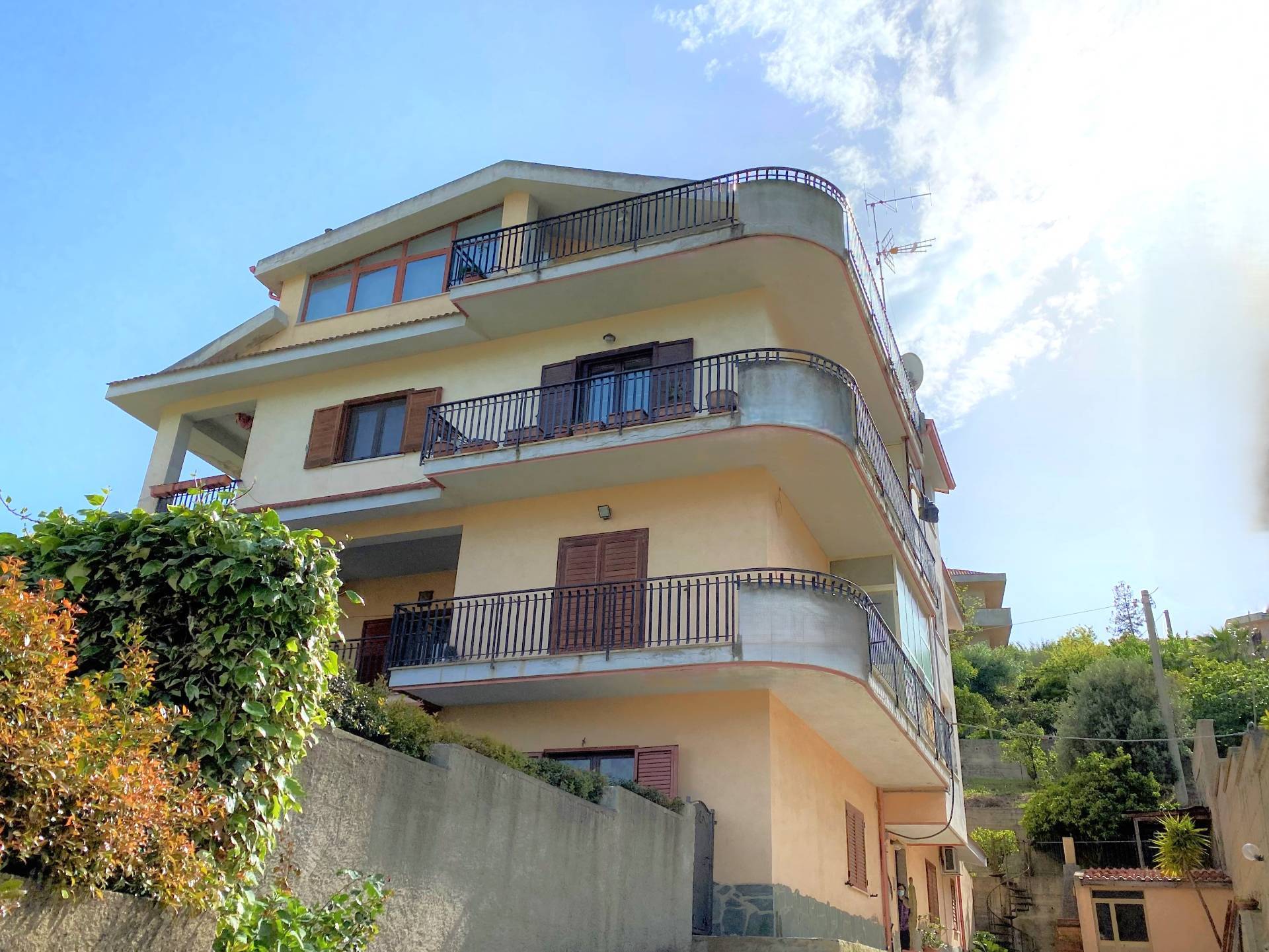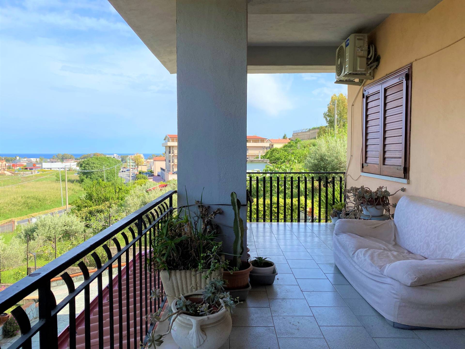 Catanzaro Lido, viale Crotone vicinanze supermercato CRAI, proponiamo in vendita ampio e luminoso appartamento posto al 1° piano in piccolo fabbricato dotato di corte recintata e area parcheggio comune. L\'immobile è molto luminoso grazie all\'affaccio aperto e alla quadrupla esposizione a 360°, dotato di ampi spazi esterni accessibili da tutti gli ambienti, internamente presenta le finiture originali ed è così suddiviso: ingresso, soggiorno doppio con accesso al terrazzo coperto con vista panoramica fino al mare, cucina-pranzo con balcone, tre camere di cui una con balcone e doppi servizi con vasca e doccia. Dotato di riscaldamento autonomo alimentato a metano. Completa la proprietà un piccolo locale deposito a piano terra, un giardino terrazzato accessibile da scala esterna e una corte esclusiva ad uso parcheggio. Ottima soluzione sia come abitazione primaria che per uso investimento in quanto offre la possibilità di frazionamento in due unità immobiliari funzionalmente indipendenti. ( leggi di meno )
