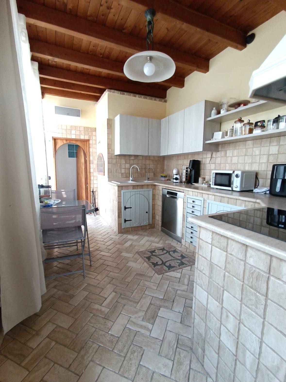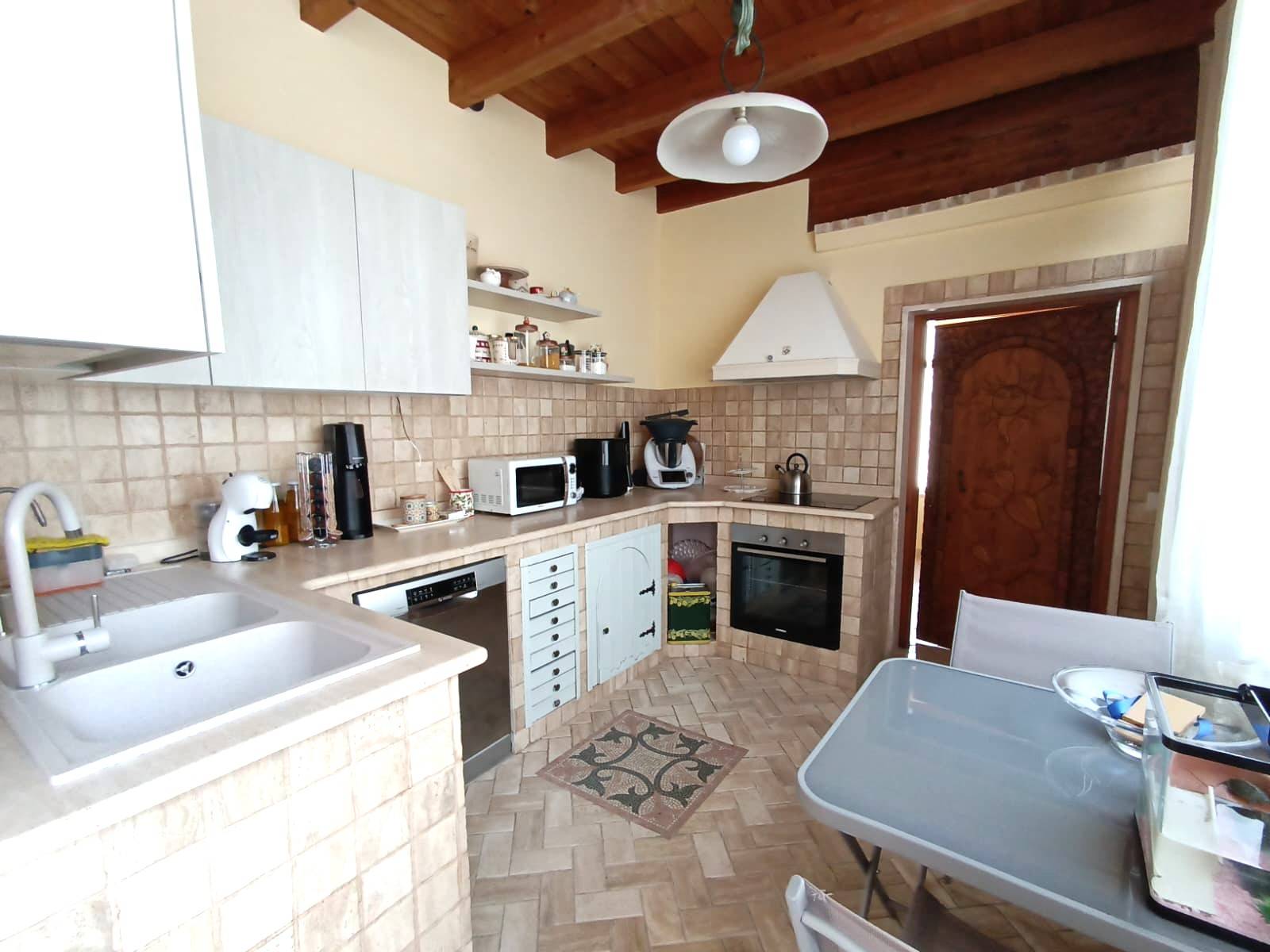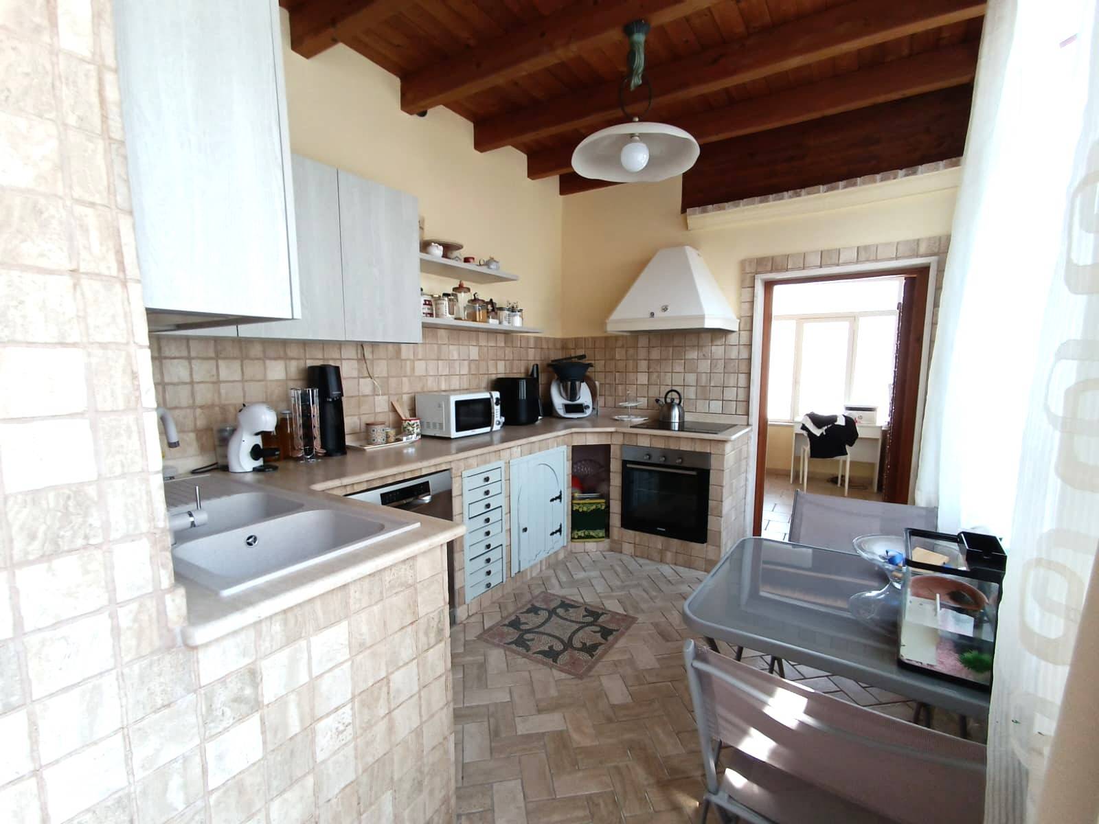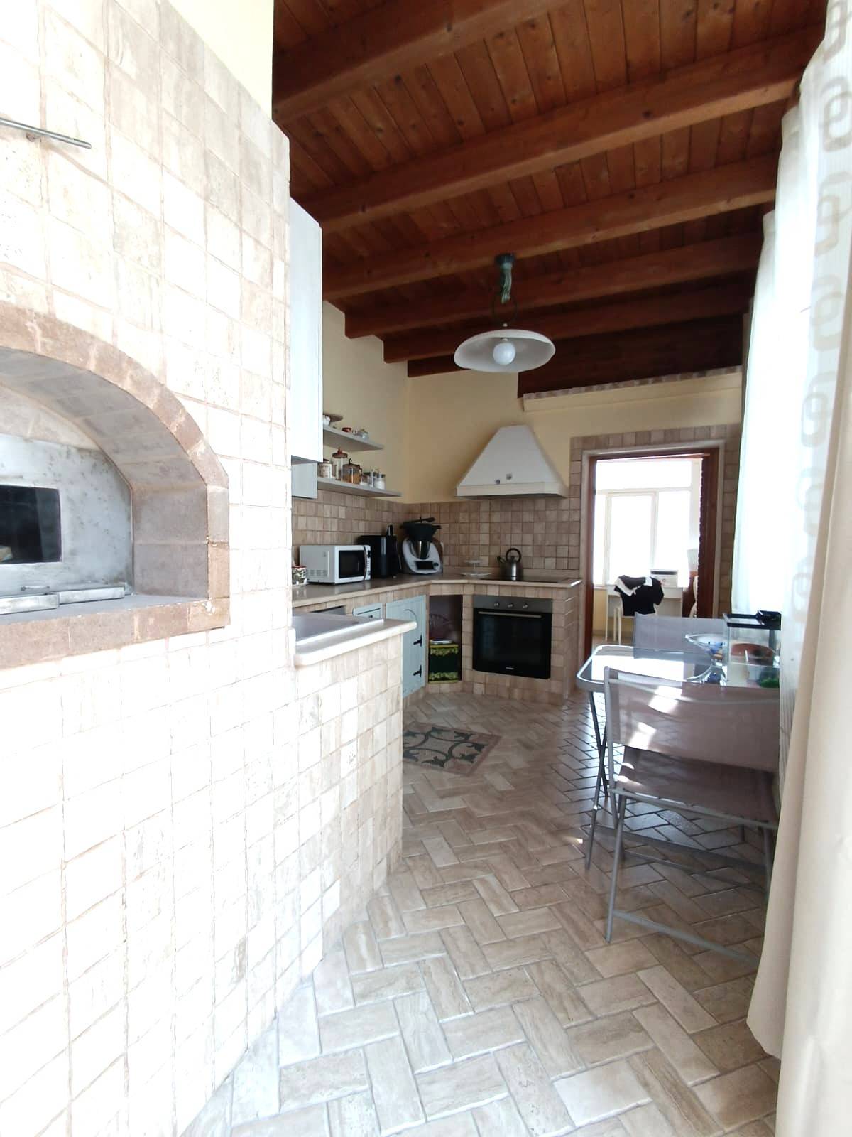 ALEZIO - CENTRO STORICO - ABITAZIONE CON ACCESSO INDIPENDENTE E TERRAZZA Nel caratteristico centro storico di Alezio, a pochi passi dalla Piazza Vittorio Emanuele, si vende abitazione indipendente posta al primo piano di un edificio storico. L\'immobile, con accesso autonomo al pian terreno, si sviluppa su una superficie coperta totale di circa 140 mq ed è composta attualmente da un ampio salotto con tipica volta a doppia stella e balcone, piccolo disimpegno, cucina abitabile con camino, veranda spaziosa con gazebo e bagno di servizio con lavanderia, secondo bagno molto ampio a servizio della zona giorno; disimpegno, quattro camere da letto, tutte impreziosite da volte a stella, due delle quali molto ampie e con bagno en suite. La disposizione dell\'immobile e la presenza di più accessi allo stesso, consentono di avviare un\'attività ricettiva con ottimo reddito; è infatti già stata predisposta una seconda cucina, ad eventuale servizio di un secondo appartamento. Si potrebbe, dunque, sia realizzare un Bed and Breakfast tradizionale, composto da camere con bagno e zona giorno comune, oppure ottenere due abitazioni autonome, con accessi separati e zona giorno esclusiva per ognuno. Completano la proprietà un ampio piano ammezzato, raggiungibile da comoda scala esterna, composto da due vani ampi e uno più piccolo, tutti con volte a stella, ideale come zona lavanderia o come zona di servizio. Infine lastrico solare di oltre 90 mq con vista panoramica sul centro storico di Alezio. L\'immobile è stato ristrutturato quasi integralmente; dispone per una porzione di impianti idrici ed elettrici nuovi; tutti gli infissi sono stati sostituiti con materiali di nuova generazione; vi è aria condizionata, predisposizione per caldaia, pannelli fotovoltaici per la produzione di energia elettrica e acqua sanitaria. Ottima sia come abitazione privata, ideale soprattutto per famiglie numerose e per chi è alla ricerca di ampi spazi interni ed esterni, sia come investimento turistico, considerata la potenzialità, la zona caratteristica e attrattiva e gli aspetti storici dell\'immobile (cementine, volte a stella). ( leggi di meno )