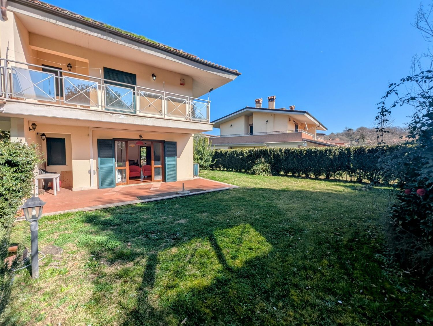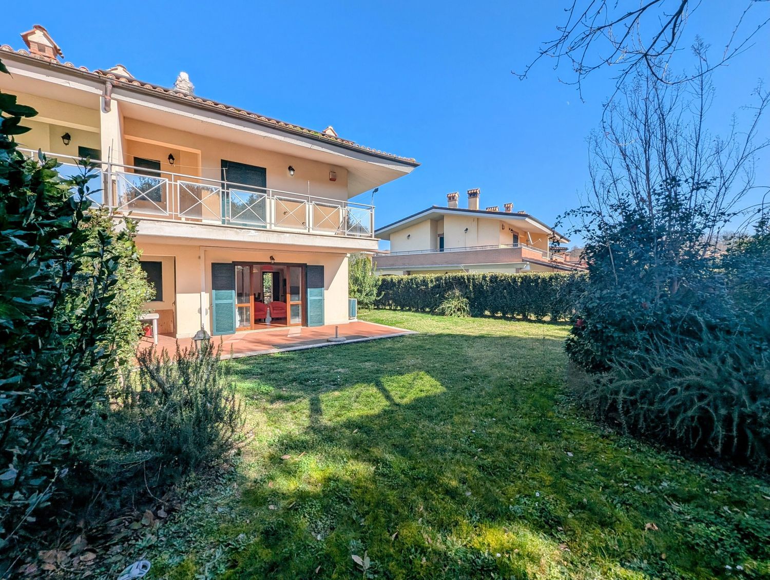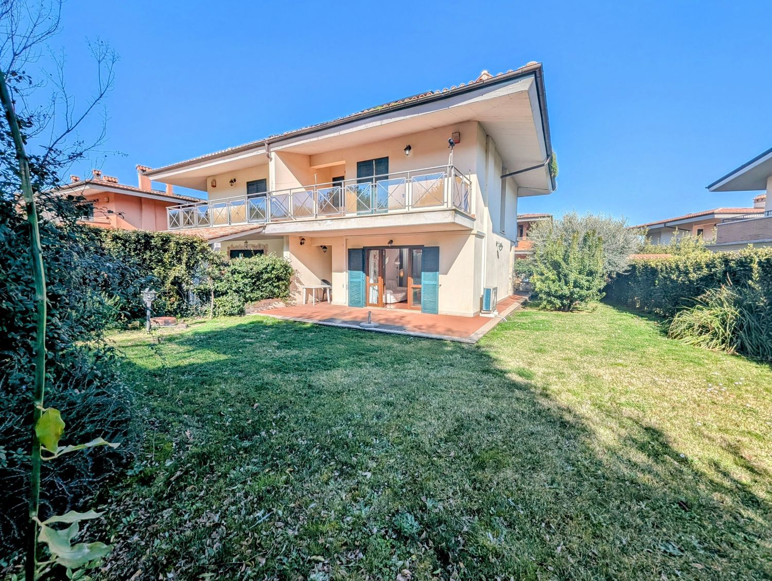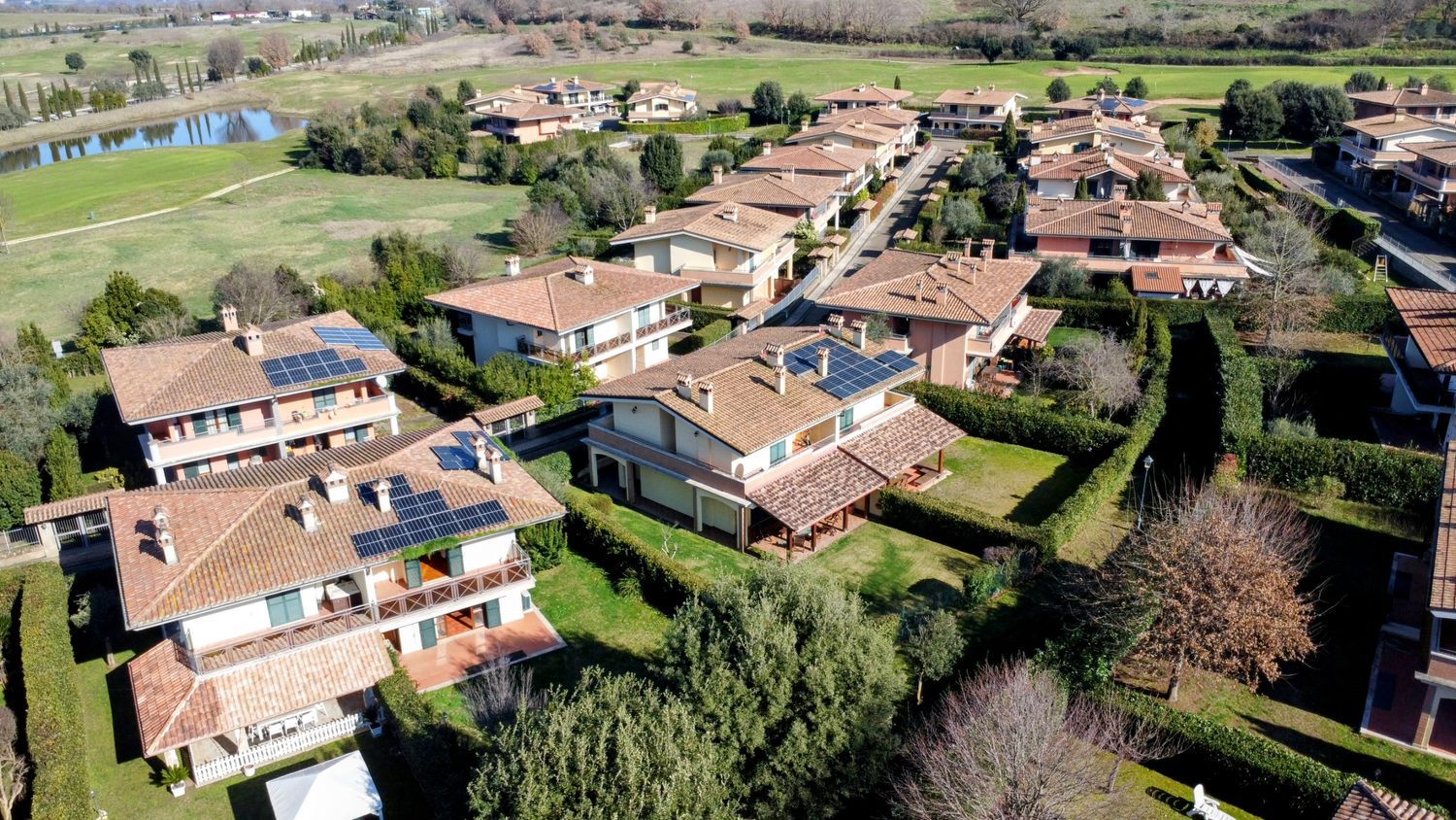 La Tocchi Real Estate ha il piacere di proporvi una delle poche abitazioni già conformi alle normative energetiche della Comunità Europea che saranno obbligatorie rispettivamente dal 2030, dal 2033 e dal 2040. Classe energetica A4 con conseguente importante risparmio nelle bollette di elettricità e gas. Pompa di calore ibrida, impianto fotovoltaico 6 kW di picco, batteria di accumulo 10 kWh e presa di ricarica per auto elettrica. La villa, nel famoso comprensorio Terre dei Consoli, è inserita nel parco residenziale interamente privato all\'interno del Golf Club disegnato dall\'Arch. Robert Trent Jones II con campo da 27 buche. L\'area tra le ville è esclusivamente pedonale e molto silenziosa, creando un contesto assolutamente riservato e privilegiato. L\'accesso alle abitazioni, avviene attraverso un sottopassaggio carrabile che porta direttamente ai garage privati, o tramite un elegante viale pedonale impreziosito da area verdi comuni. All\'ingresso, un ampio parcheggio libero per clienti del Golf e ospiti dei residenti. Internamente, al piano terra, ampia area living con adeguato spazio per zona salotto e zona pranzo con camino, grande portafinestra a sud con accesso su patio e giardino privato. Sempre al piano terra, cucina con settore dispensa e un bagno completo. Al piano primo, due ampie camere da letto, due bagni di cui il principale con vasca idromassaggio e due terrazze. Al piano interrato, ampia sala hobby, lavanderia, servizio e ampio garage per due auto e scaffali e eventuale moto. Conclude la proprietà un ampio giardino perimetrale alla casa, con impianto di irrigazione automatico. Struttura in cemento armato antisismico, mura perimetrali con intercapedine ed isolamento termico. Sanitari e finiture di elevata qualità, infissi esterni in pino di Svezia e vetrocamera con persiane blindate in ferro. Piano interrato con intercapedine. Termoautonomo e split per raffreddamento. ( leggi di meno )