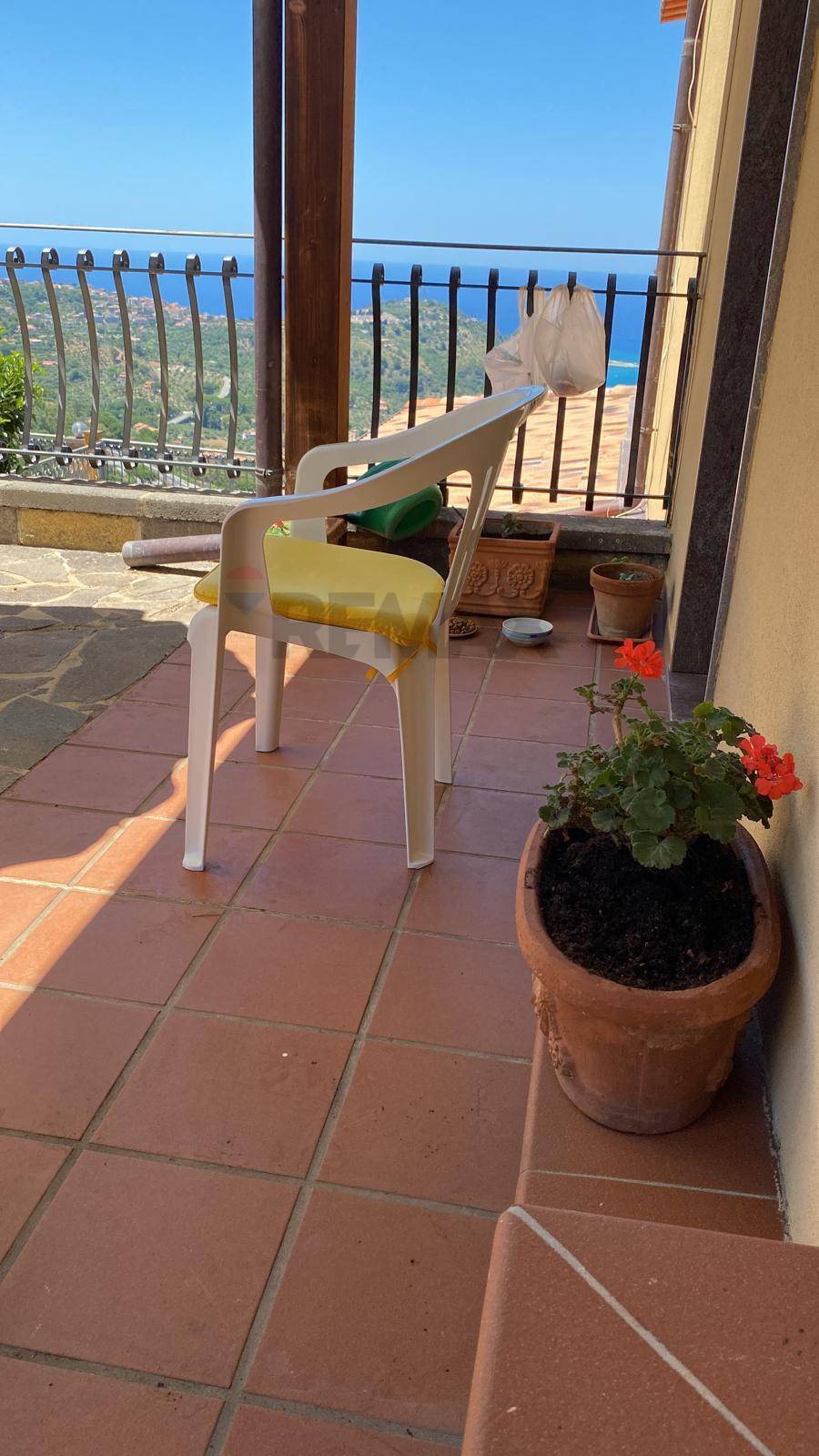 Appartamento con terrazza panoramica. Ampio e luminoso appartamento composto da ingresso/disimpegno, due camere, un bagno, un ripostiglio e un comodo soggiorno/pranzo/cucina, che si apre su un grande terrazzo con straordinaria vista panoramica della costa tirrenica della Sicilia. L\'appartamento viene venduto in gran parte arredato. Completa l\'immobile una grande corte privata che, grazie alla p... ( leggi di più )