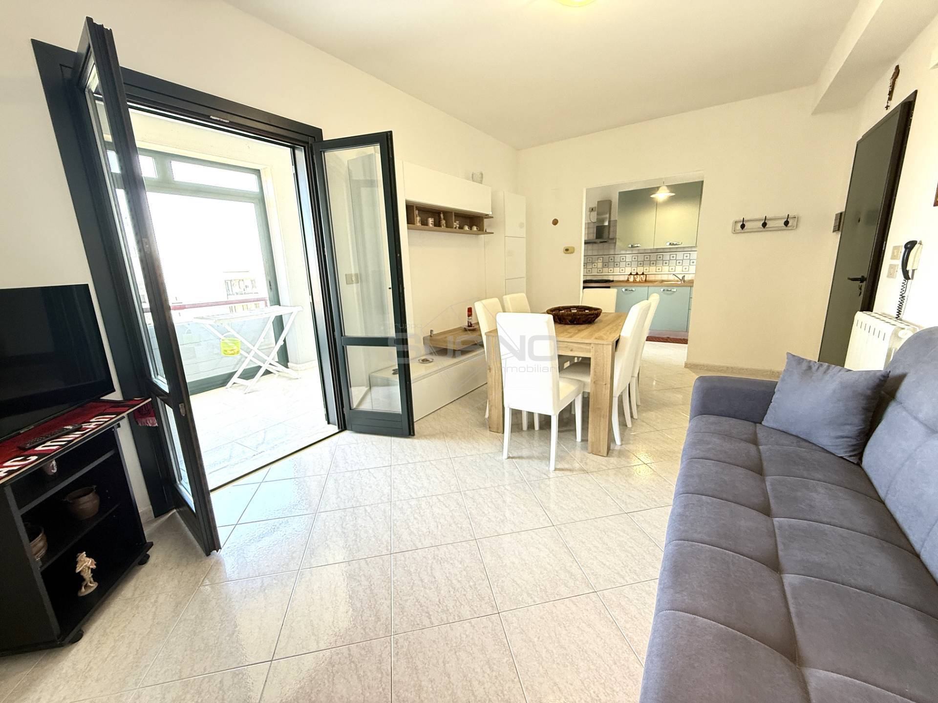 Via De Caprio. Proponiamo bivani pronto da abitare, all\'interno di un piccolo e buon contesto condominiale, recintato e con posto auto assegnato! L\'appartamento offre una distribuzione degli ambienti comoda e funzionale. Malgrado la superficie contenuta, disimpegni e spazi serventi sono ridotti al minimo, ottimizzandone al meglio le potenzialità. All\'interno troviamo: ingresso su comodo soggiorno, cucinino disimpegnabile (attualmente aperto sul soggiorno), angolo lavanderia/ripostiglio, ampia camera da letto e bagno. Completa il tutto la grande veranda vista mare. Ottima soluzione alternativa al \"Caro Affitti\". Ideale per investimento con rendita del 6% circa! ( leggi di meno )