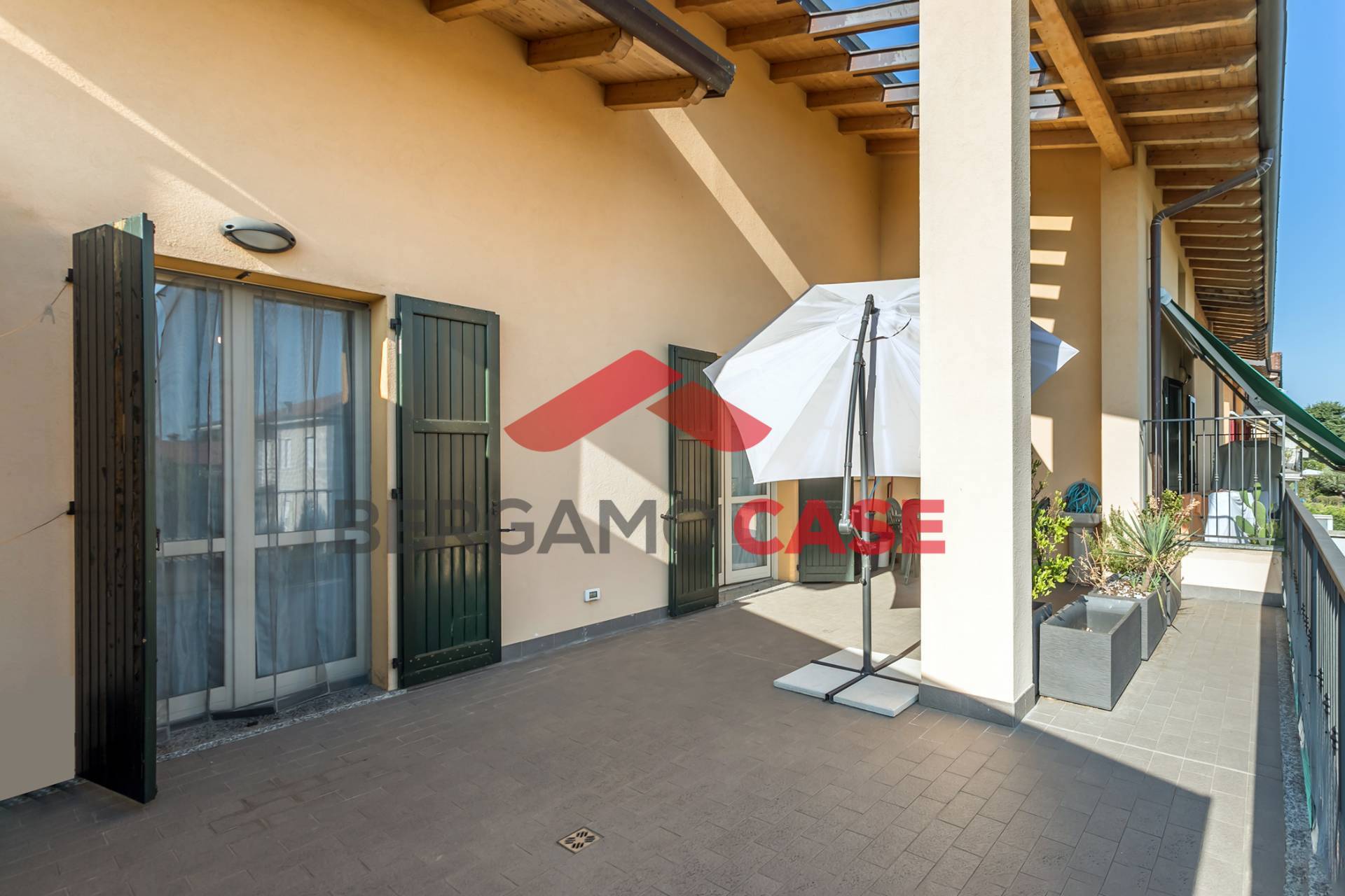 Bergamo Case propone in vendita a Stezzano un luminoso bilocale con splendida terrazza di 37 mq e box auto di proprietà. L’immobile si trova al primo e ultimo piano di una piccola palazzina, in una zona tranquilla e riservata. L’appartamento è così composto: soggiorno con angolo cottura, camera da letto matrimoniale, bagno finestrato, ampia terrazza parzialmente coperta, con travi a vista e lucernari, perfetta per vivere al meglio gli spazi esterni in ogni stagione. Completa la proprietà un\' autorimessa di 17 mq. Attualmente locato con regolare contratto in scadenza nel 2029, l’immobile garantisce una resa annua del 4,7%, rappresentando una soluzione ideale per investitori in cerca di una rendita stabile e sicura. ( leggi di meno )