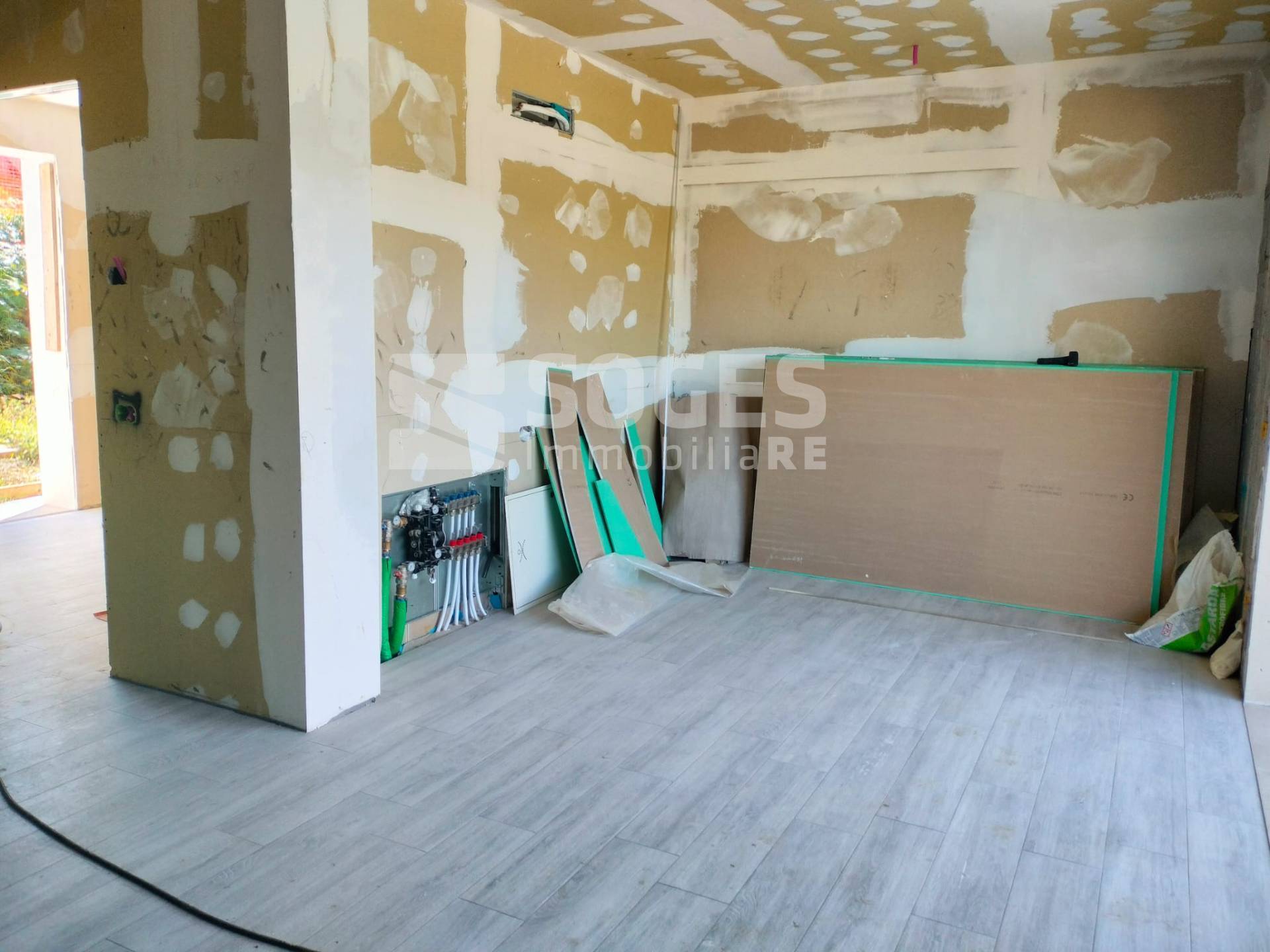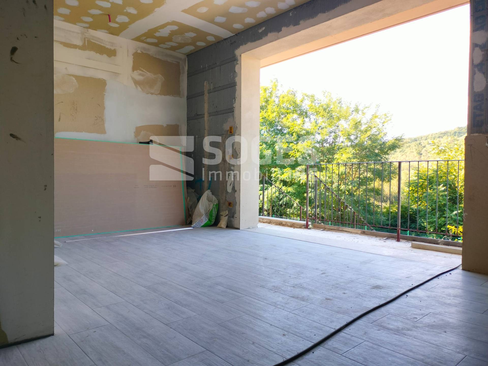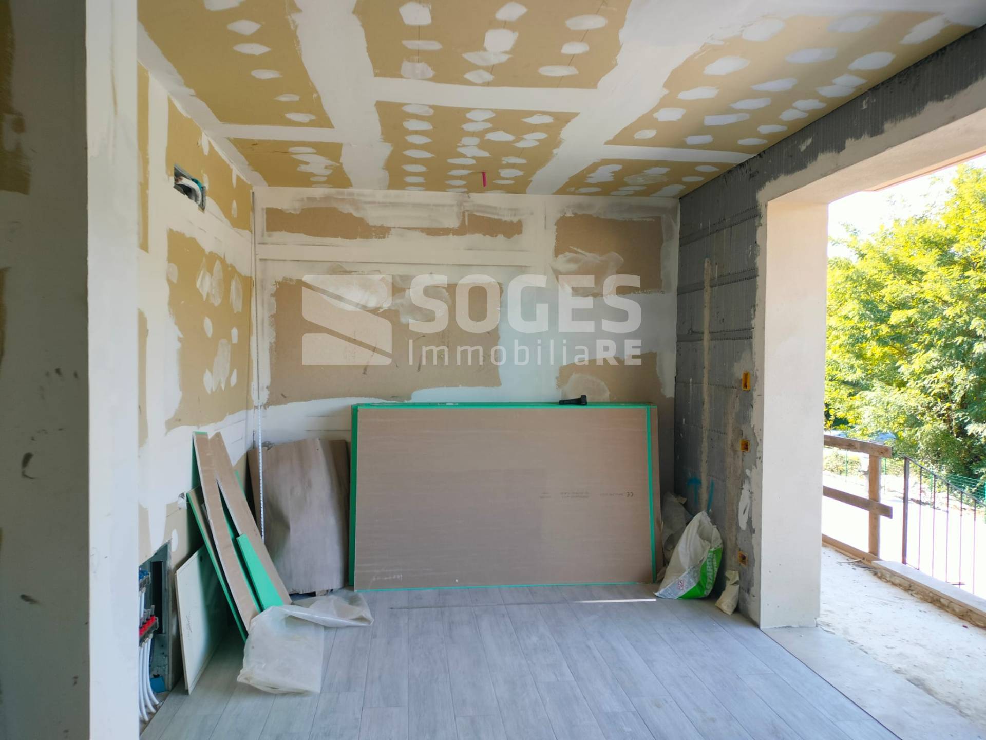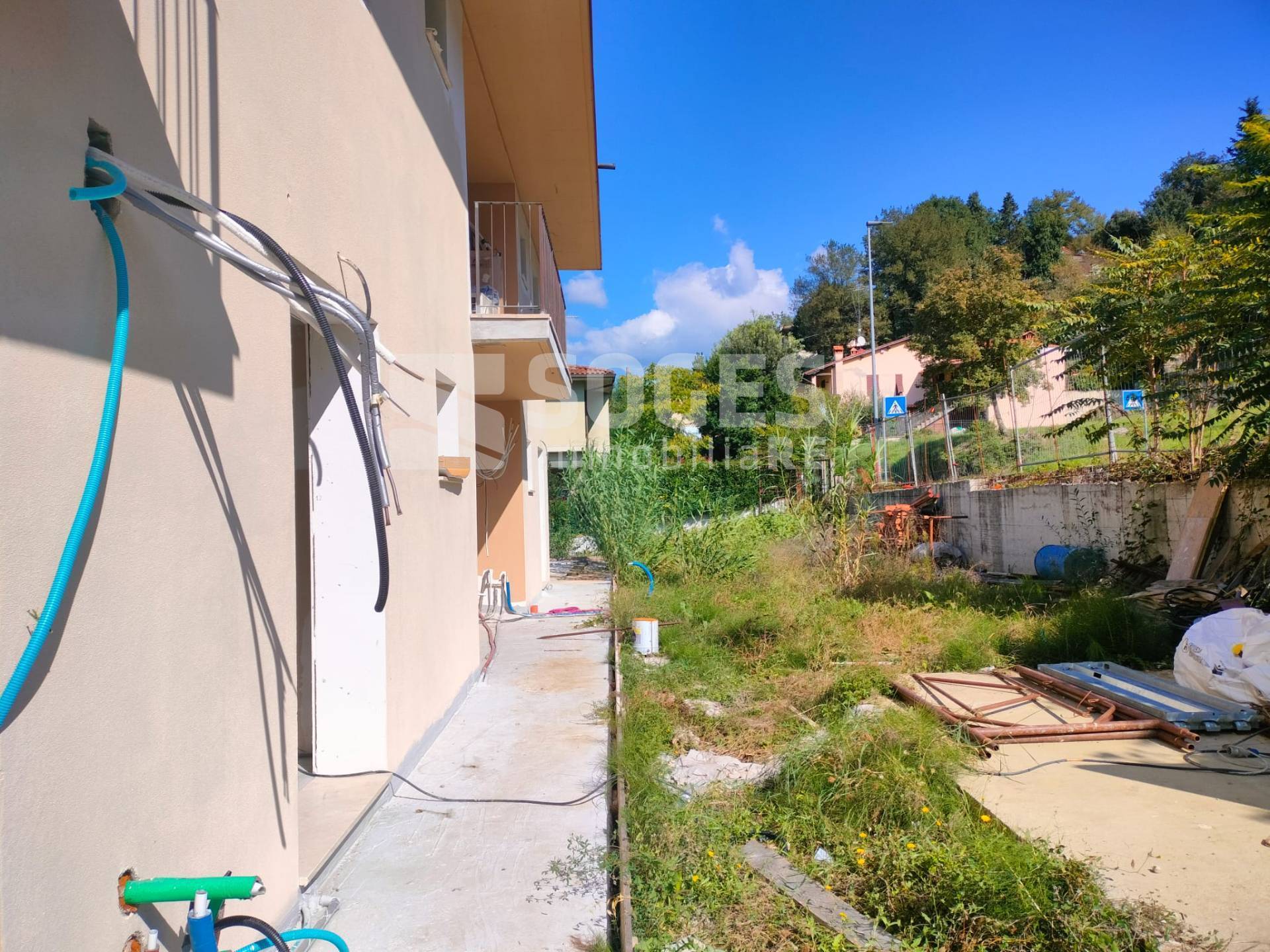 Sant\'Ellero, in complesso di villette di nuova costruzione in classe A, appartamento con giardino di 40 mq, disposto al piano rialzato e dotato di taverna al piano terra, per una metratura complessiva di 100 mq, oltre garage di 25 mq posto lateralmente alla taverna, pertanto utilizzabile anche come prolungamento della taverna stessa. Dotato di ingresso indipendente, si compone al piano terreno rialzato di zona giorno open-space con cucina a vista, disimpegno, camera matrimoniale, bagno, terrazzo di 10 mq e giardino di 40 mq; al piano inferiore è dotato di taverna con porta finestra verso l\'esterno (pertanto ben utilizzabile sia come seconda camera che come zona giorno, ottenendo un\'altra camera al piano superiore), ulteriore bagno e garage. L\'appartamento è attualmente in stato di ultimazione lavori (come visibile da foto). Realizzato con elevati standard di fabbricazione ed efficientamento energetico come cappotto isolante, pannelli solari, pannelli fotovoltaici, caldaia a pompa di calore, riscaldamento a pavimento. L\'appartamento sarà inoltre dotato di predisposizione per climatizzazione, ed ogni stanza, predisposta per il recupero del calore di scambio (VMC). Possibilità di personalizzazione delle rifiniture come da capitolato. Classe energetica A. - Rif. 47945 - Per Info e visite 055.19936720 ( leggi di meno )