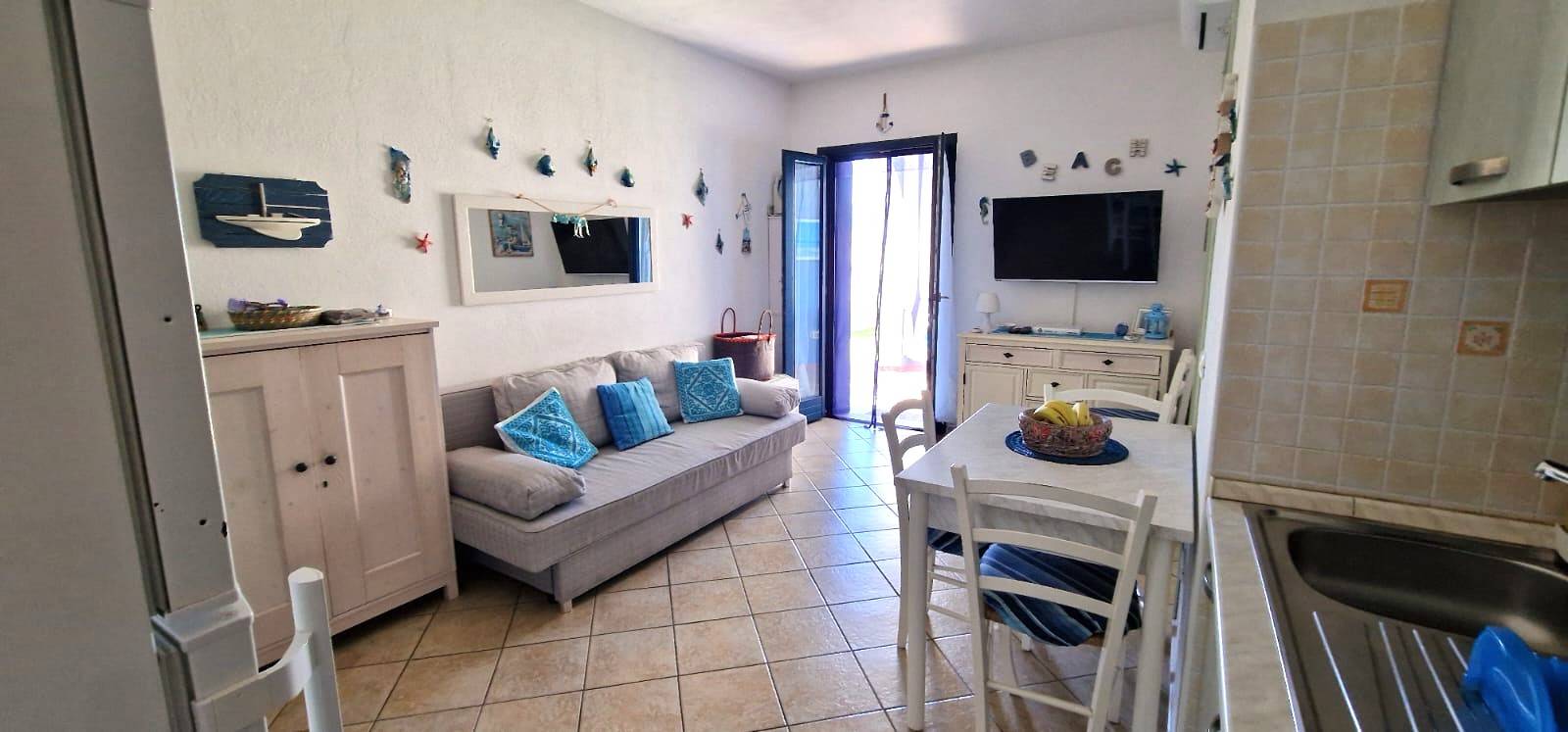 Proponiamo in vendita a Valledoria, località La Muddizza, via Mazzini, un grazioso appartamento situato al piano terra, facente parte di un di un complesso residenziale con piscine condominiali e ampio giardino condominiale. L\'immobile dispone di una camera da letto matrimoniale, un bagno, una luminosa zona giorno con angolo cottura, avente accesso diretto alla veranda coperta e al giardino privato, dove poter mangiare e ammirare fantastici tramonti in totale relax e privaci. La casa risulta completamente arredata, dotata di tutti i comfort, climatizzata ecc.. Completa la proprietà posto auto coperto di proprietà esclusiva. L\'immobile si trova in ottimo stato, garantendo un\'abitabilità immediata. L\'appartamento viene venduto comprensivo di arredo, corredo e climatizzatori. Ottima soluzione per chi cerca un\'abitazione comoda e funzionale, ideale per una coppia o per chi desidera trascorrere le vacanze in una località balneare rinomata, a pochissima distanza dalla Spiaggia di La Ciaccia, Maragnani e Baia Verde. ( leggi di meno )