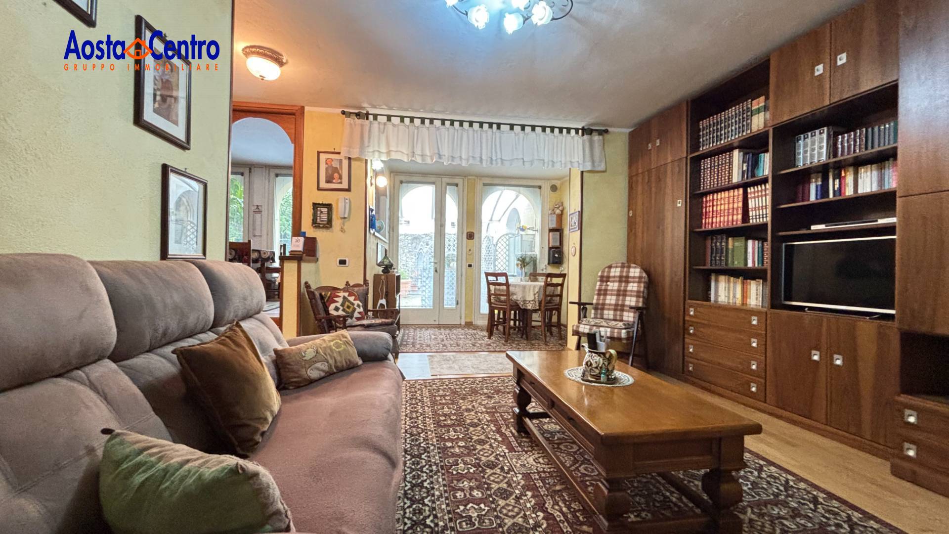 Aosta-Via Challand Proponiamo in vendita, in esclusiva, silenzioso trilocale posto al piano terra nel cuore del centro storico della città. L\'appartamento è molto accogliente, pronto per essere abitato, collocato in un’elegante palazzina storica, si presenta con doppio ingresso indipendente e un’area esterna privata delimitata da cancello e ringhiera. All’interno troviamo un soggiorno spazioso e luminoso con zona pranzo, cucina abitabile con doppia finestra, camera matrimoniale, servizio e ripostiglio. Dalla scala interna si accede al piano inferiore composto da una taverna confortevole con armadio a muro e un secondo servizio. La proprietà viene riscaldata con caldaia autonoma a metano che permette di avere basse spese di gestione. L\'alloggio viene venduto completo di arredi. Le descrizioni e i dati degli immobili sono indicativi e non costituiscono vincolo contrattuale. Per ulteriori informazioni o visite presso l\'immobile contattateci ai numeri: Fisso: 0165/548899 Whatsapp: 339/4993196 Mobile: 347/7146696 ( leggi di meno )